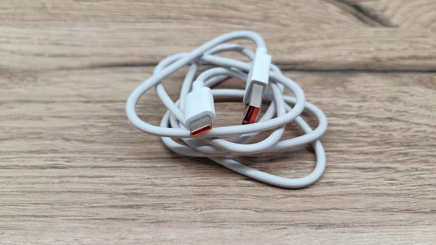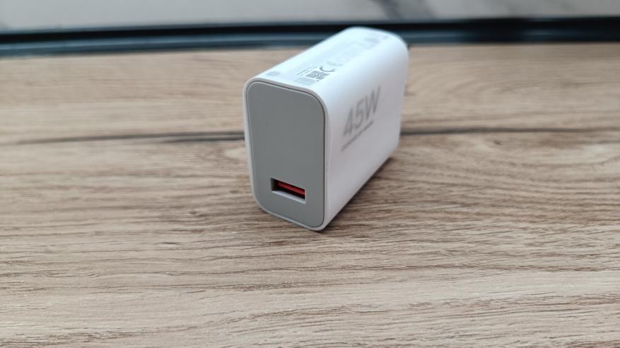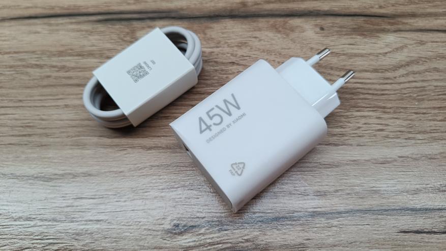 Блок питания с поддержкой быстрой зарядки на 45 Вт, в довесок есть кабель длиною 1 метр. Как мне показалось оболочка кабеля довольно грубая.