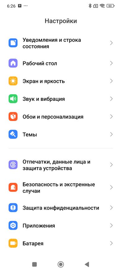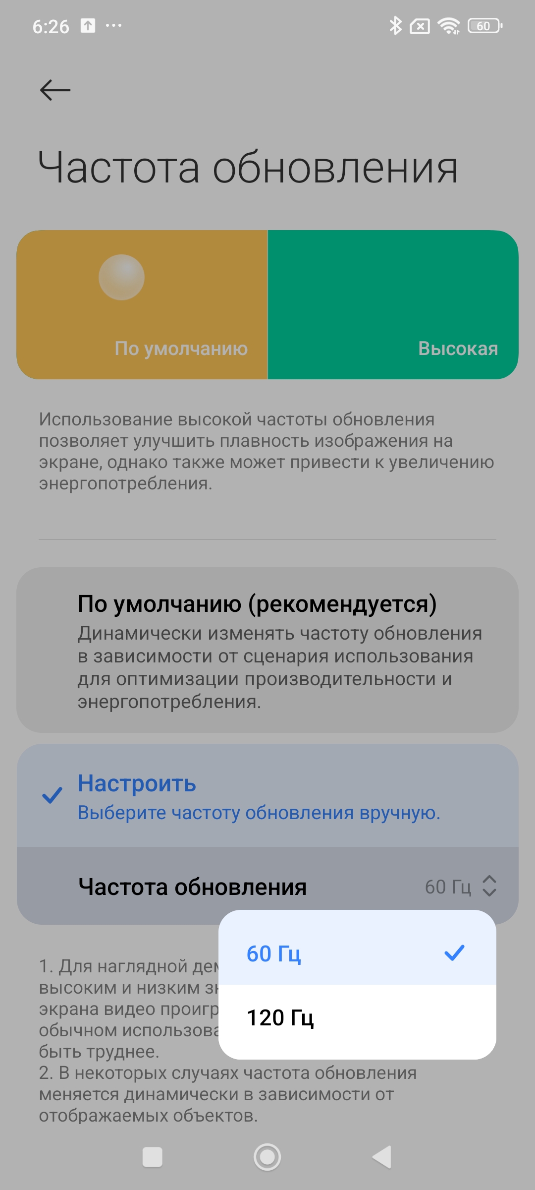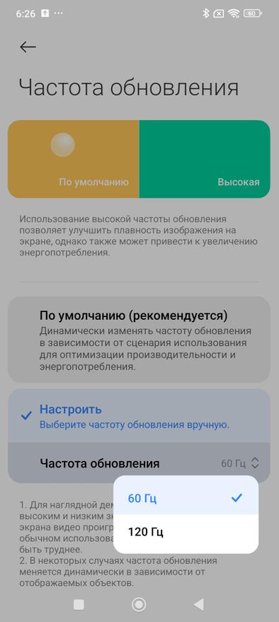 Особой разницы в меню между 14 и 15 версией Android я не заметил. Перевод выполнен качественно, все пункты соответствуют названию. В настройках экрана есть возможность выставления частоты в 120 Гц. После включения ощущается особая плавность в менюшках.