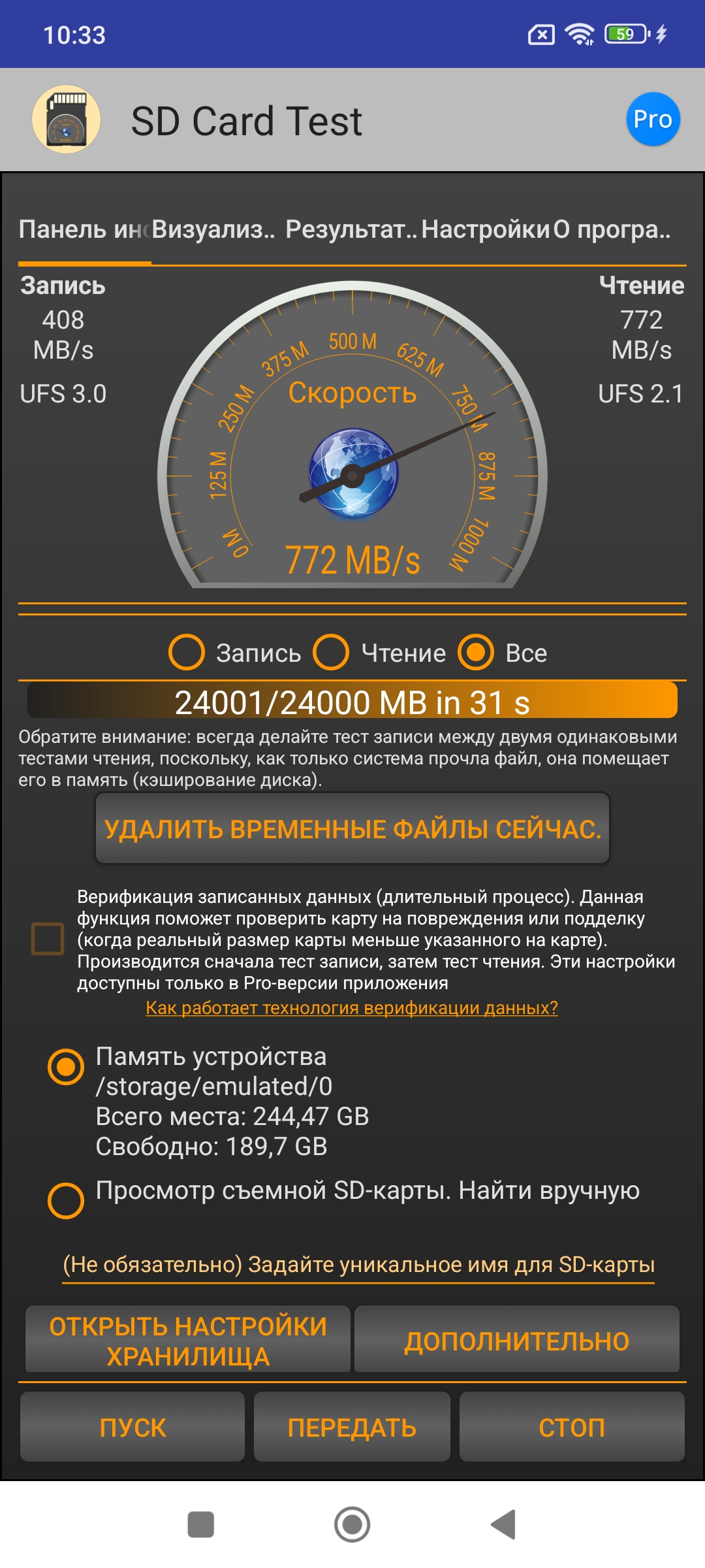 Накопитель может быть представлен 256 или 512 ГБ памяти. Хранилище работает по стандарту памяти UFS 2.2 и позволяет довольно быстро реагировать на большие файлы, сохраняя или перемещая их.
