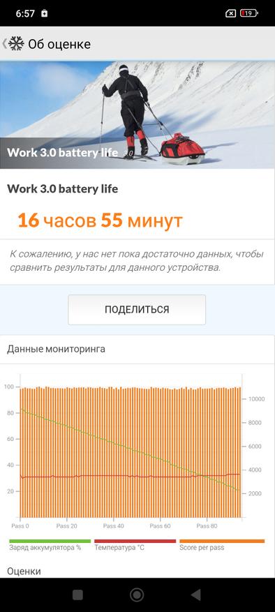 Напомню, что в смартфоне стоит увеличенный аккумулятор с емкостью в 5110 mAh. При выставлении средней яркости экрана разряд смартфона с 80 до 20 процентов занял почти 17 часов. Очень убедительная автономность, которой вполне достаточно для целого дня активного использования.