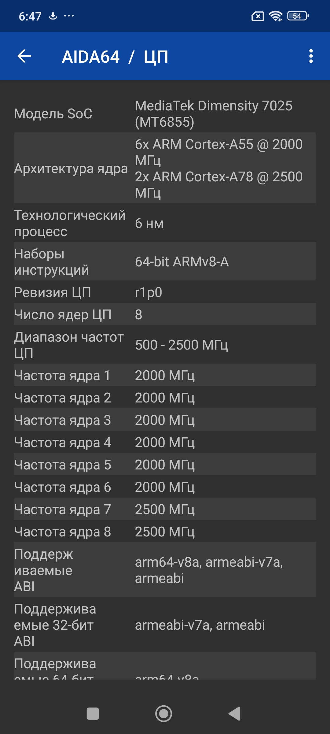 | процессор | MediaTek Dimensity 7025 8 x 2 — 2.5 GHz, Cortex-A78 / A55 |