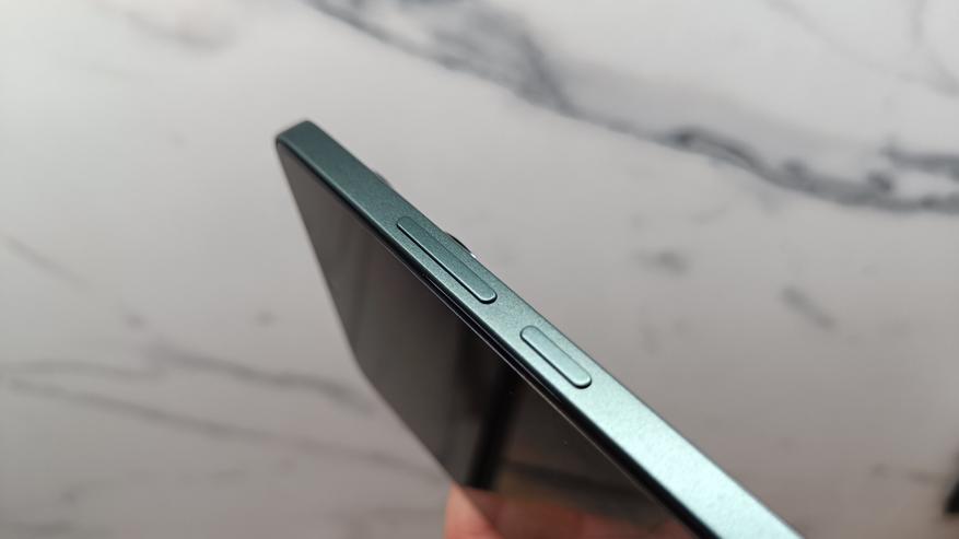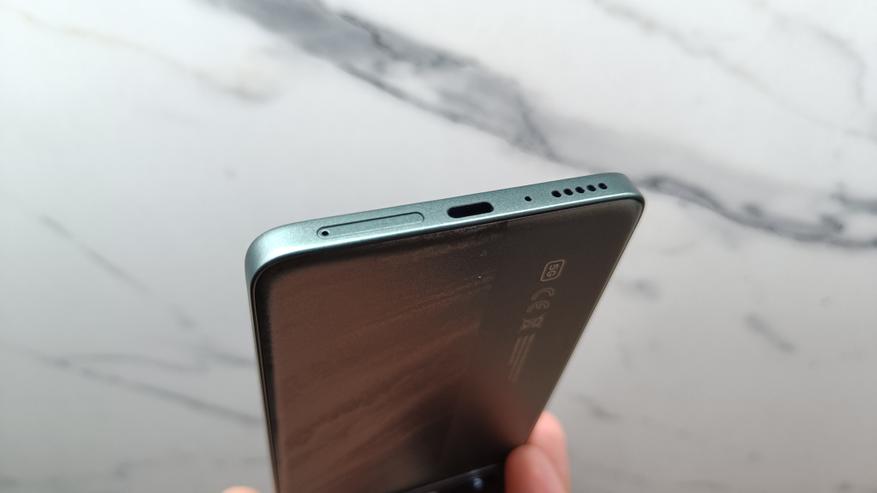 Правая боковая грань содержит качельку громкости и кнопку включения. Левая сторона остается чистой. Верхняя часть содержит разъем для наушников, динамик, ИК-порт и микрофон, а на нижней можно увидеть основной динамик, разговорный микрофон, разъем питания USB Type-C и лоток под карточки. ИК-порт поможет при удаленном управлении современными устройствами без обращения к штатному пульту.