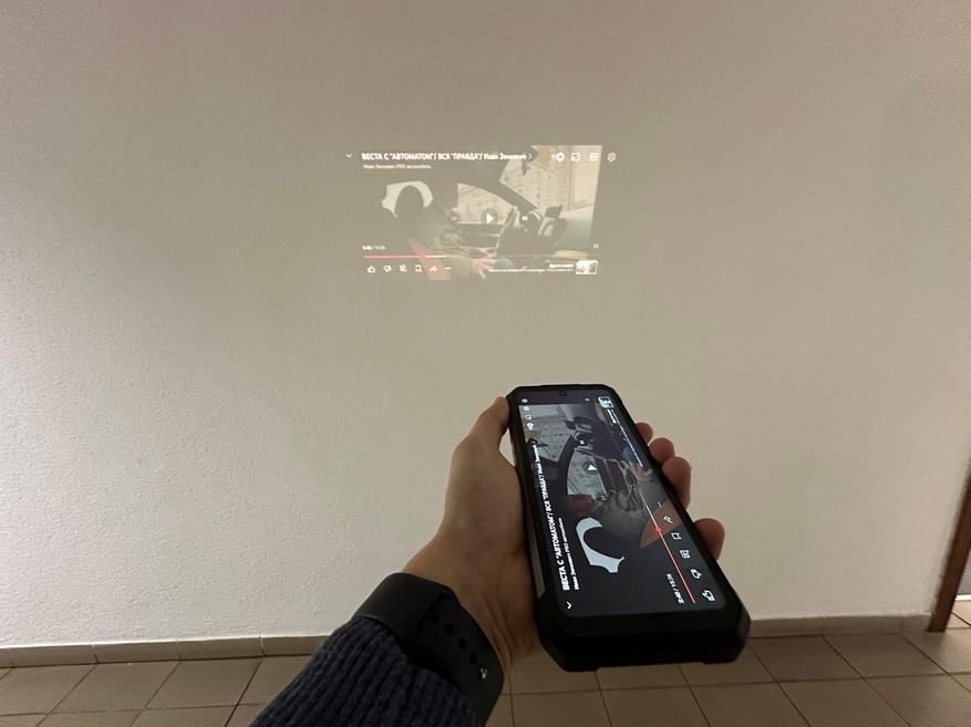 Важной особенностью смартфона является наличие лазерного пикопроектора. Такое делали в смартфонах и ранее, но подобное решение все равно является большой редкостью даже для устройств в подобном форм-факторе. Для обычного смартфона наличие проектора было бы и вряд ли полезным, а для ударопрочного защищенного смартфона с огромным аккумулятором идея приобретает смысл.