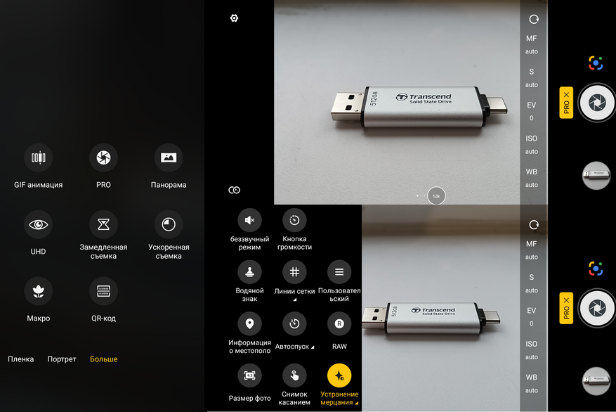 Основные опции камеры я привел на скриншотах: