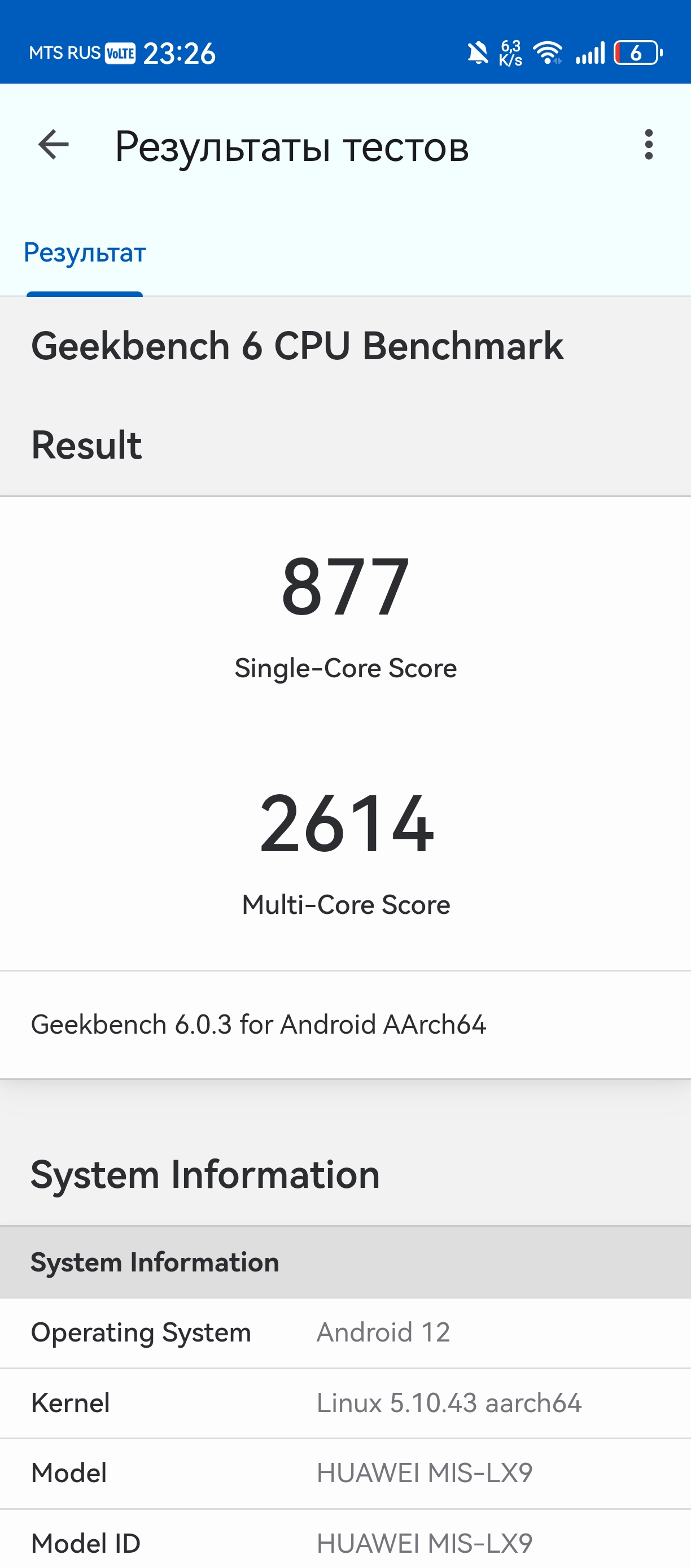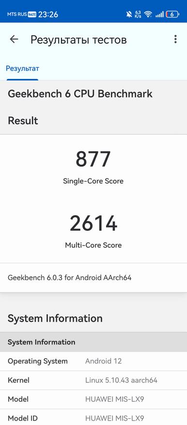 Результаты тестов Geekbench представил ниже. В одно- и многоядерной тестах — 877 и 2614 баллов.