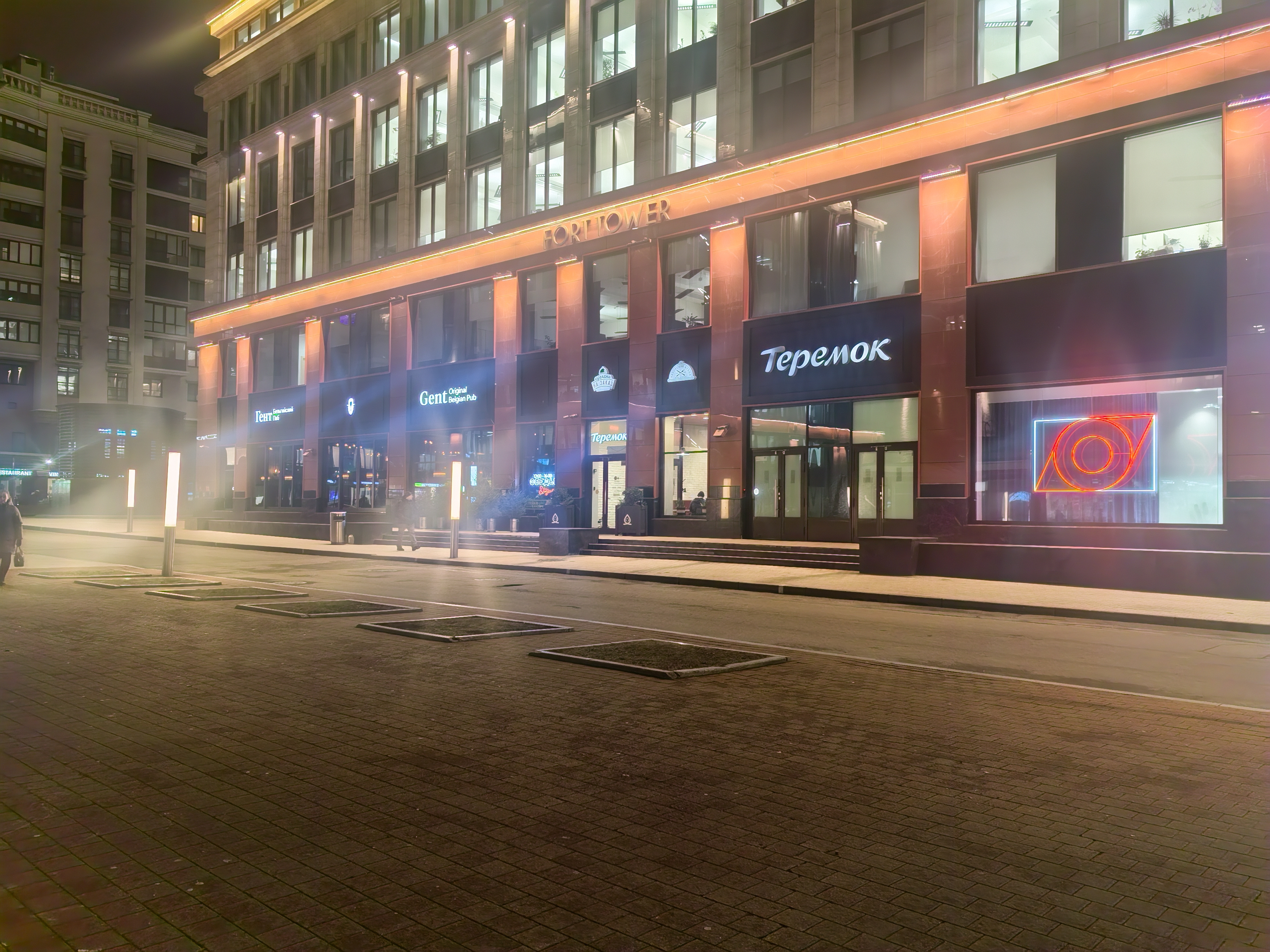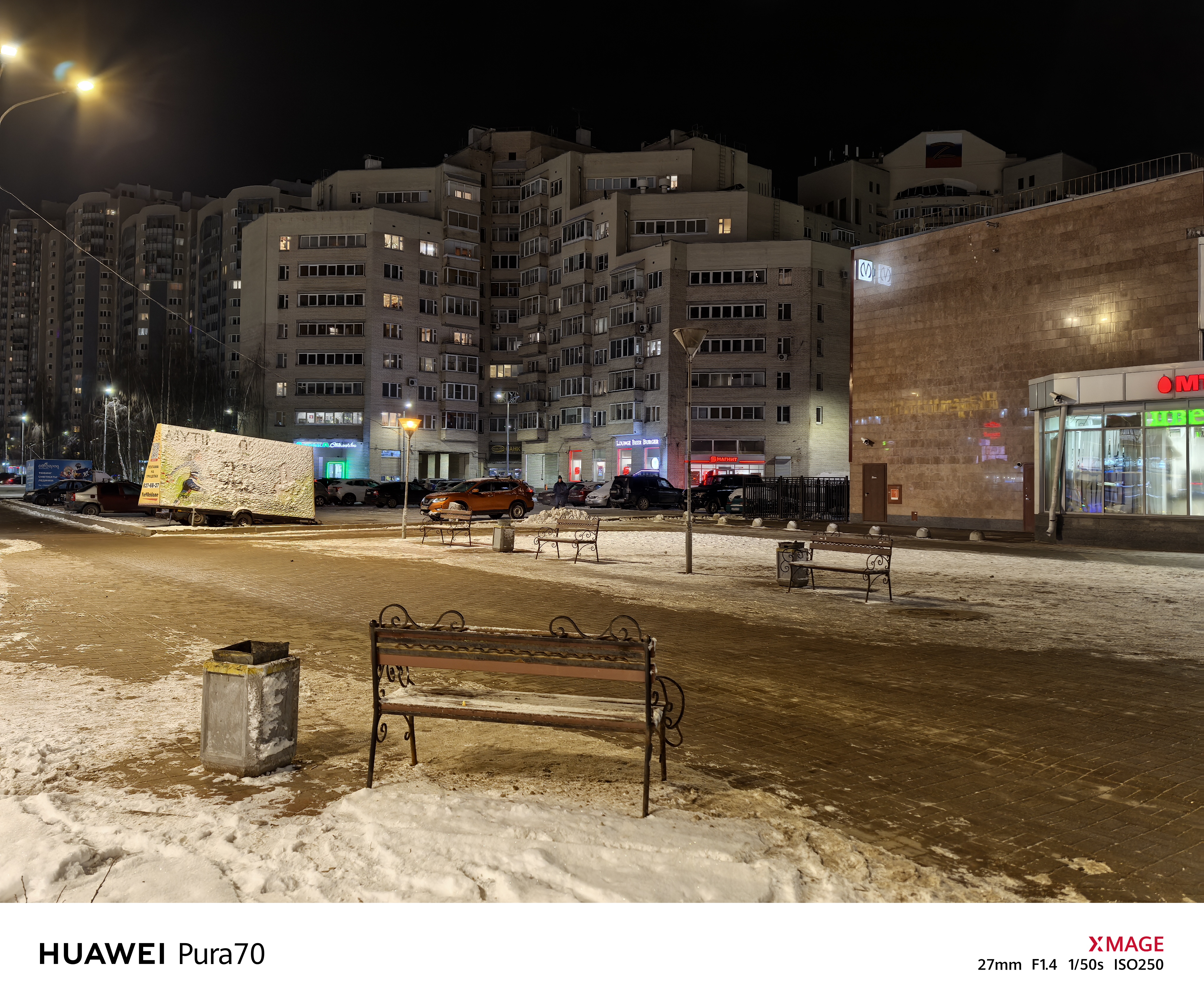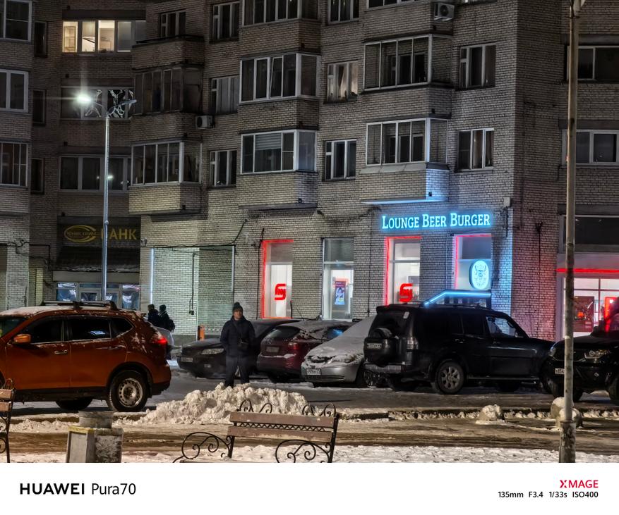В темное время суток разница остаётся такой же, как и в примерах выше. Линзы Pura 70 Ultra «поймали» полосы от точечных источников света. На Nova 13 Pro такого нет из-за меньшего количества стекл до матрицы. Детализация похуже у Nova 13 Pro, но тут сравнение камер из разных ценовых категорий, поэтому некритично.