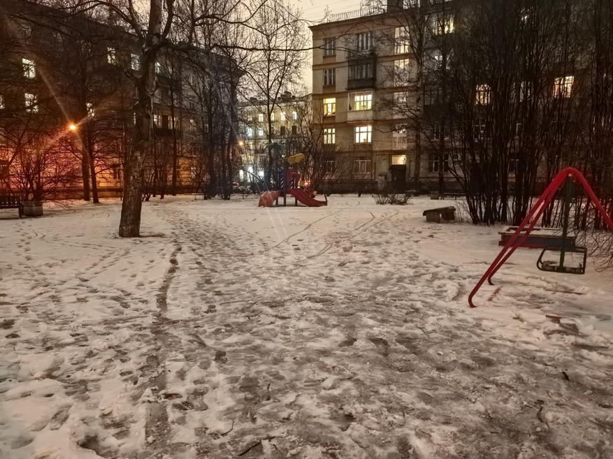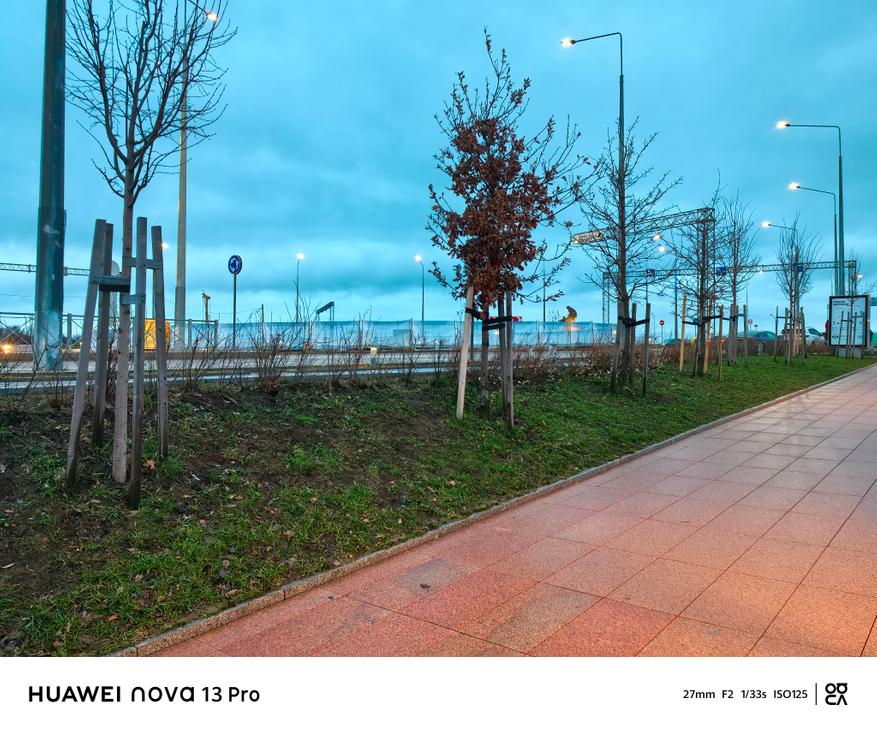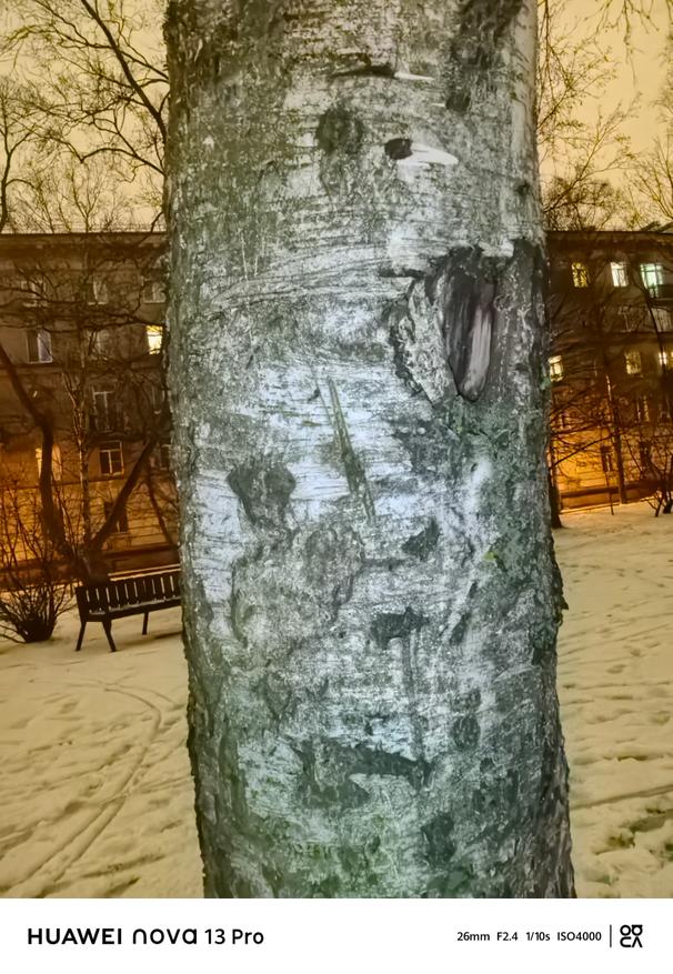 Следующие фотографии очень точно описывают отличия Pura 70 Ultra от Nova 13 Pro. Вечернее небо никак не могло быть таким ярким, как и трава в зимний период. Единственное, на счёт чего можно спорить — это цвет плитки, но и он ближе к реальному на втором кадре. Такого большого расхождения между Pura 70 Ultra и Nova 13 Pro не было даже при сравнении второго с младшим линейки Pura 70 телефоном (см. ниже). Такой расклад — заслуга флагмана серии Pura 70, а не недочёты Nova 13 Pro, поэтому выделил первый в отдельное сравнение с обозреваемым, чтобы показать близкие к действительности кадры и то, что делает Nova 13 Pro.
