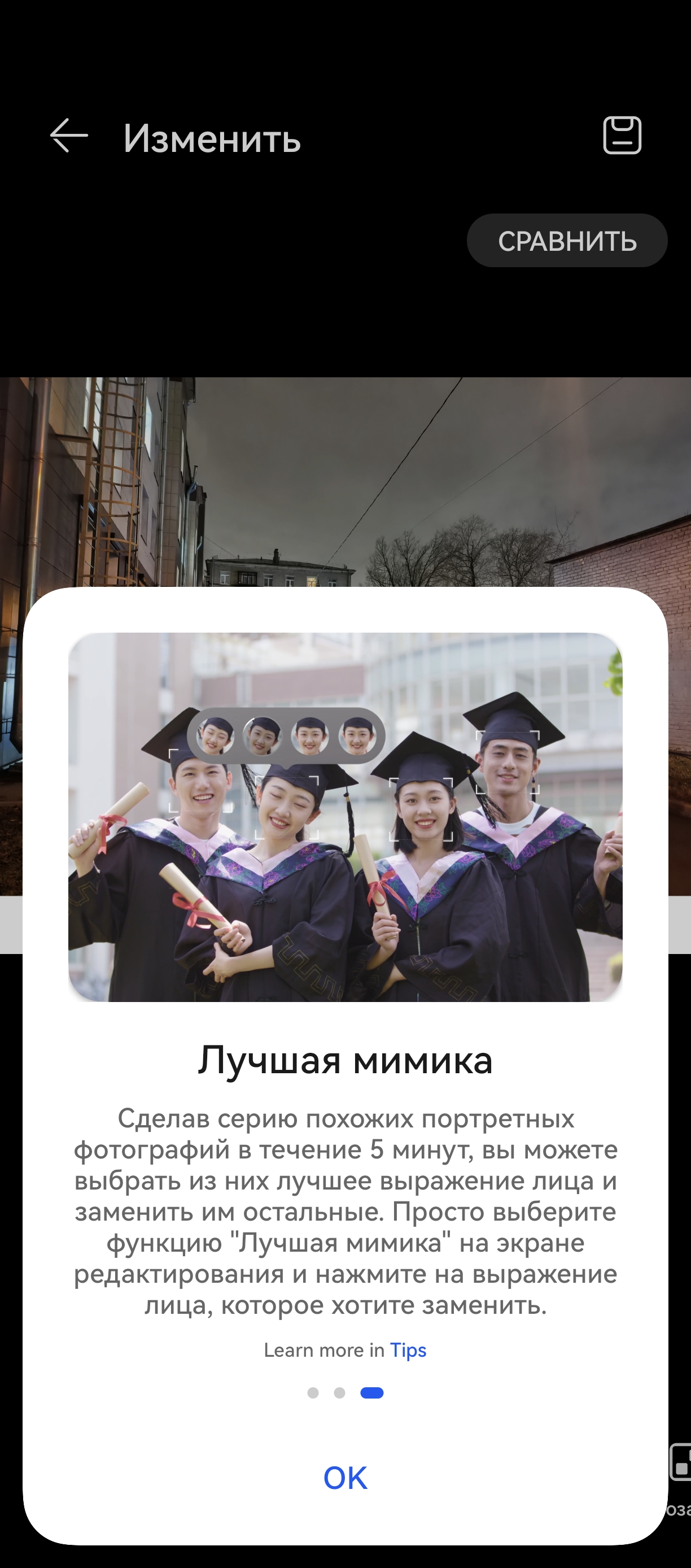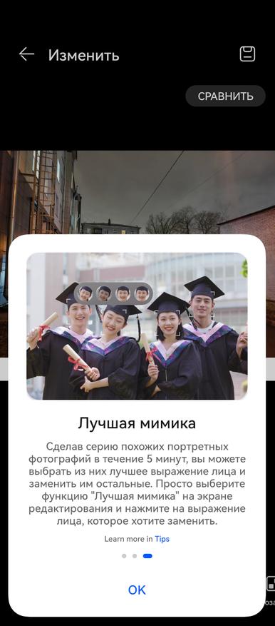 Я не могу делать кадры на фронтальную с лицами, ввиду понятных причин. Главное отличие фронтальной камеры в Nova 13 Pro — при нескольких кадрах система запоминает выражения лица, точнее в настройках фотографии при помощи искусственного интеллекта можно будет заменить его из сделанных в серии. На промокартинках показаны три выражения лица, которые система предлагает к замене, но не всегда она определяет овал правильно. Точнее, если лицо в серии двигалось, то предложенные для замены будут выглчдеть смешно в итоге.