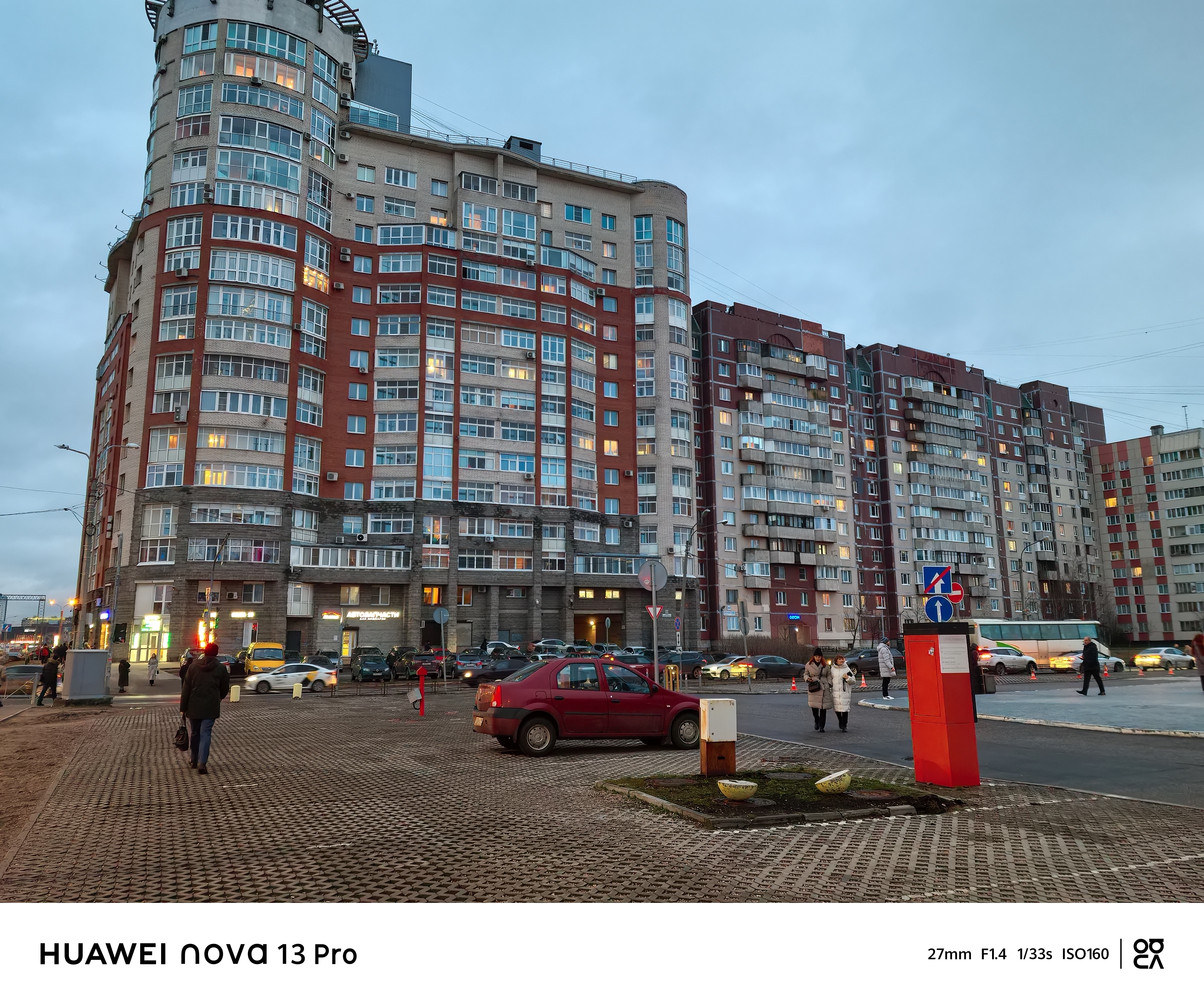 Мне понравилось следующее сравнение. Кадр был сделан вечером, но по Nova 13 Pro не скажешь, что был именно такой период дня. Объекты на фотографии видны ярче, что мне нравится больше, но, конечно, это не соответствует действительности. С другой стороны темный кадр в ночное время мне не очень нужен. Думаю, «высветления» фона на Nova 13 Pro должно найти поддержку у молодого поколения, кто эти кадры будет выкладывать в свои социальные сети.