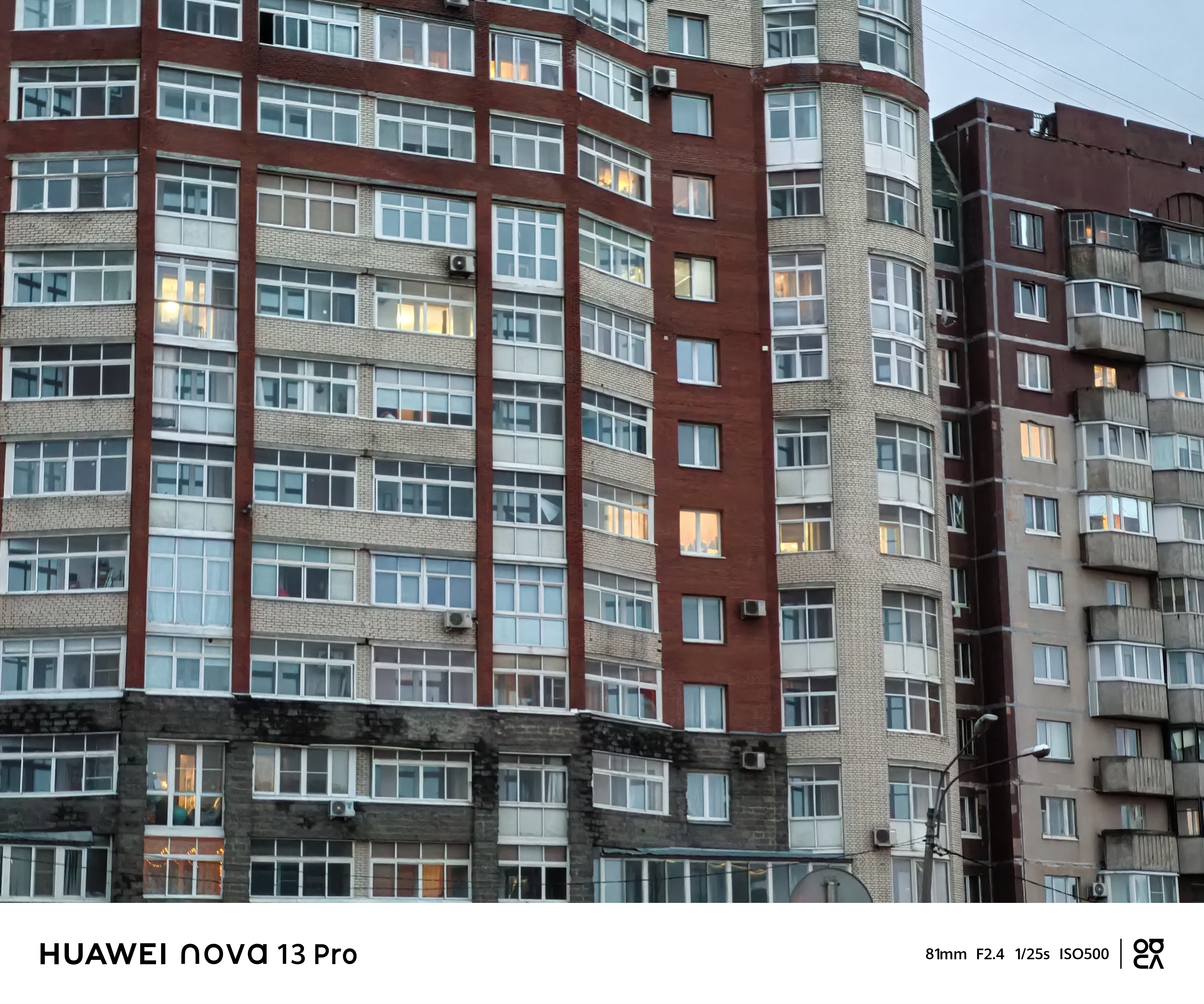 На счёт стабилизации скажу отдельно. На Nova 13 Pro кадр трясется. Степень «шевеленки» меньше, чем на Poco X7 Pro. В видео есть момент, когда видно небо между домами. Оно не теряется на фоне и видно работу HDR, но на Poco X7 Pro он работает немного лучше. В каждом из трёх телефонов оптическая стабилизация ведёт себя по-разному. Сравнивать запись видео с Poco F5 Pro не стал.