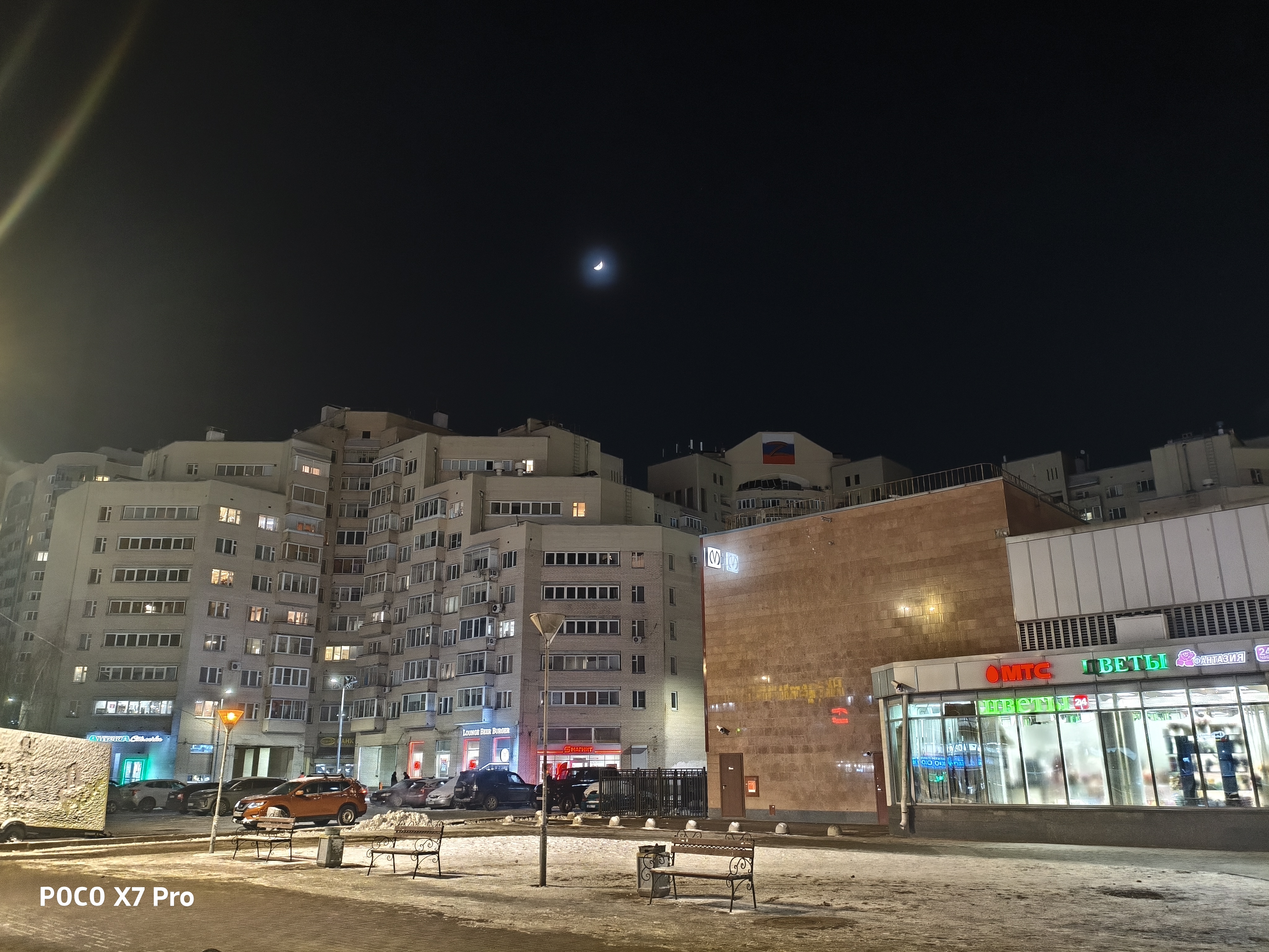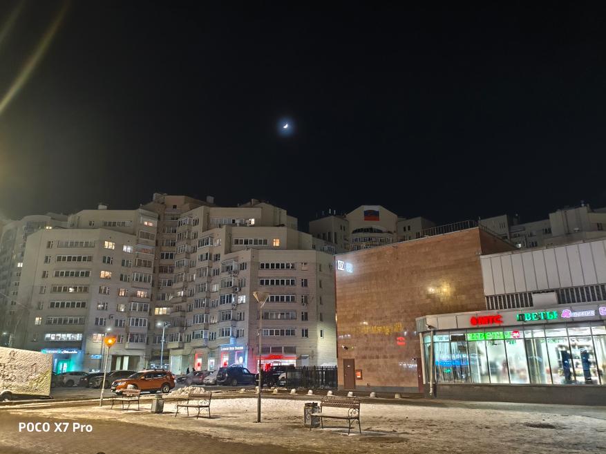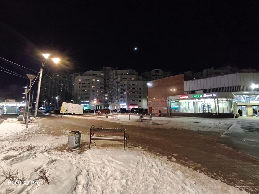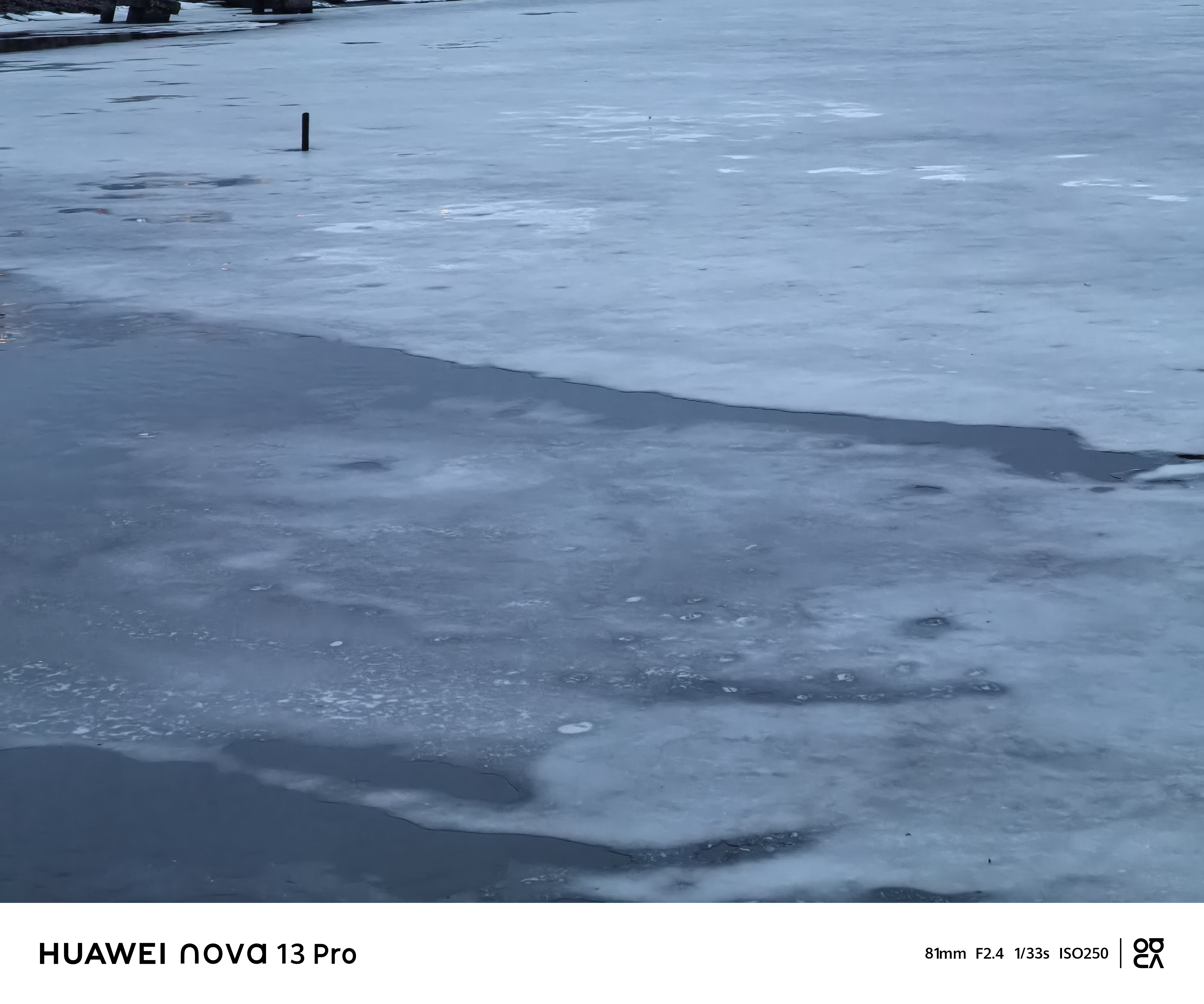 Кадр примерно такой же, как в случае со льдом. Nova 13 Pro показал хороший, четкий ночной снимок, но не поймал теплый свет фонарей. На камеры второго телефона это удалось сделать, но не сказать, что изображение от этого выиграло. При сравнении я бы отдал предпочтение первому, так как на втором, кажется, неправильно подобран баланс белого (и не важно, что в действительности красный оттенок от фонарей был так заметен). Можно сделать осторожный вывод, что камеры и алгоритм Nova 13 Pro не настолько точны в деталях, но большая точность обычно лежит в другом ценовом сегменте.