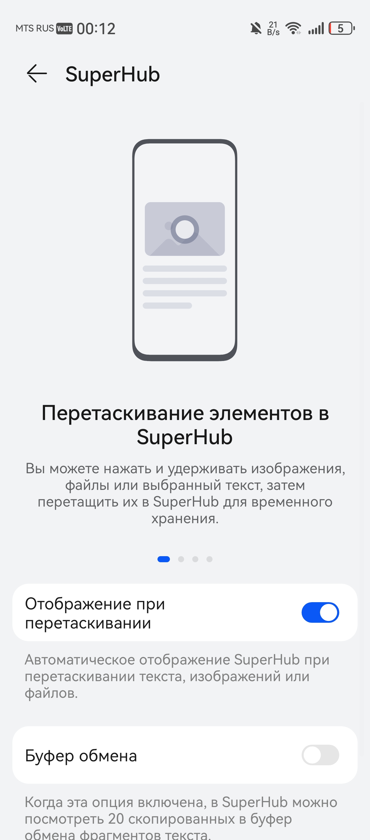 Управлять аппаратом можно или с помощью кнопок, или жестов. Дополнительно есть режим многозадачности. Экран на EMUI можно организовать в трёх окнах: разделив его на два и третье повесив над ними. В оболочке есть специальные возможности бренда по взаимодействию устройств из экосистемы HUAWEI — это SuperHub и HuaweiShare. Обе направлены на быстрый обмен файлами между сопряженными устройствами. Я использую их для передачи фотографий и видео.