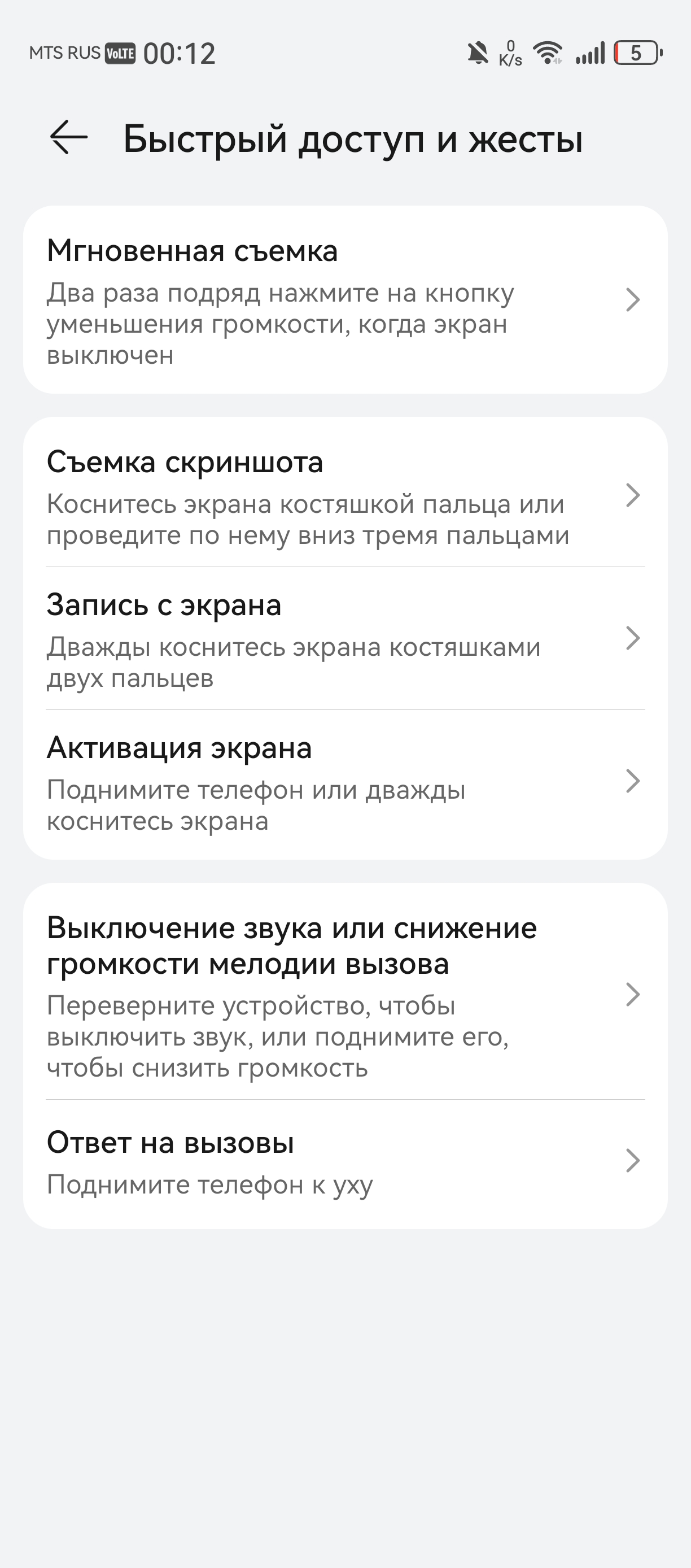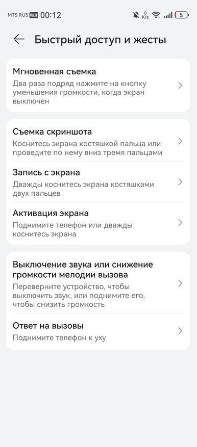 К сожалению, нет управлений жестами. Есть привычные по касаниям костяшкой для скриншота или двумя для видео. Схожим способом можно делать снимок части экрана или начинать запись.