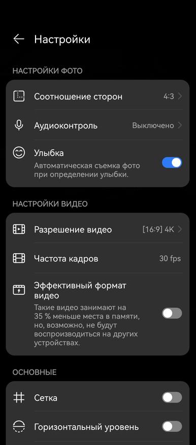 Основная камера записывает в 30 к/с при разрешении 4К. Возможно увеличить частоту кадров до 60 к/с, но разрешение уменьшится до 1080p. Можно не просто переключаться между основной и широкоугольной при начатой записи в любом разрешении, но и вообще, между любой из пяти камер. Такая опция понравилась. Был сильно удивлен, когда при записи видео 4K@30fps увидел в правом углу переключатель на фронтальную камеру. Как понял, такая опция есть и в Nova 13.