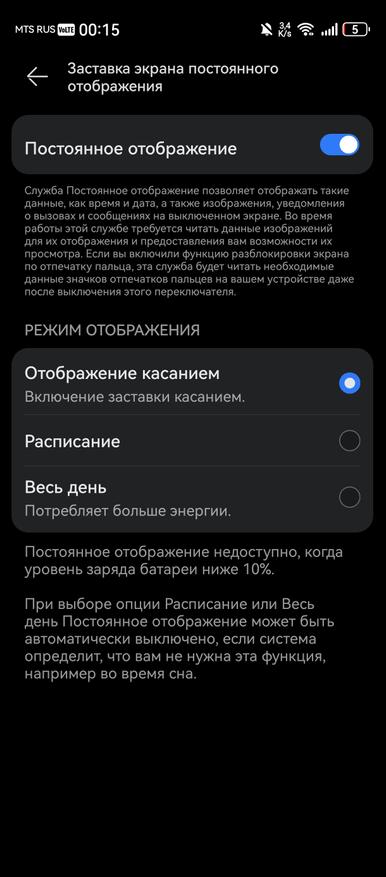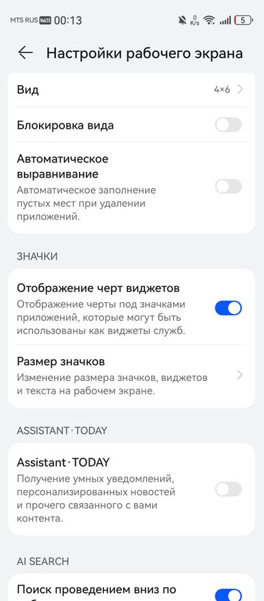 Есть много настроек относительно вида, расположения, формы и порядка на рабочем столе. Кастомизировать можно очень много деталей внешнего вида, в чем помогает оболочка EMUI 14.2. Учитывая, что экран OLED (да ещё и LTPO), то можно включать опцию по постоянному отражению текста (AOD). Она также настраивается и, в отличие от Poco X7 Pro (обзор здесь) не ограничена по времени.