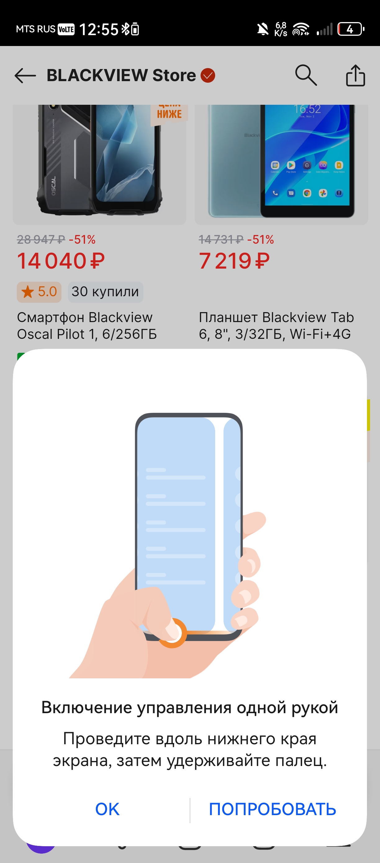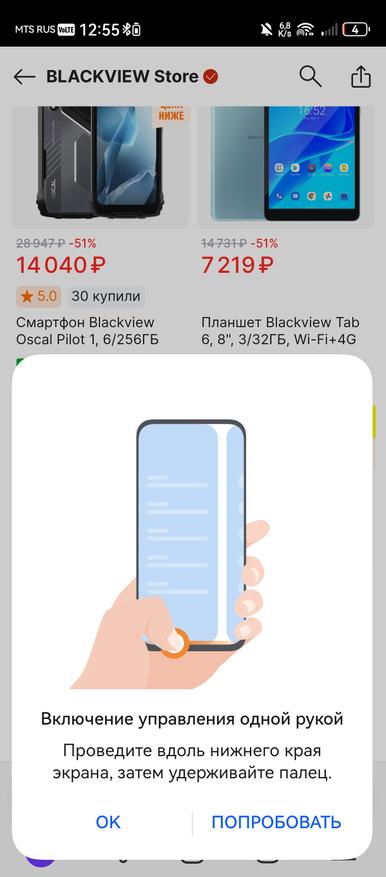 Рабочий стол представил на следующих скриншотах. Пятым показал часть возможностей по управлению касаниями. Можно задать одним пальцем низ экрана, подождать немного и его размер станет меньше. Так вызывается «Управление одной рукой». Дополнительные жесты — это вызов бокового меню, в котором можно расположить часто используемые программы. Я привык к этому меню.