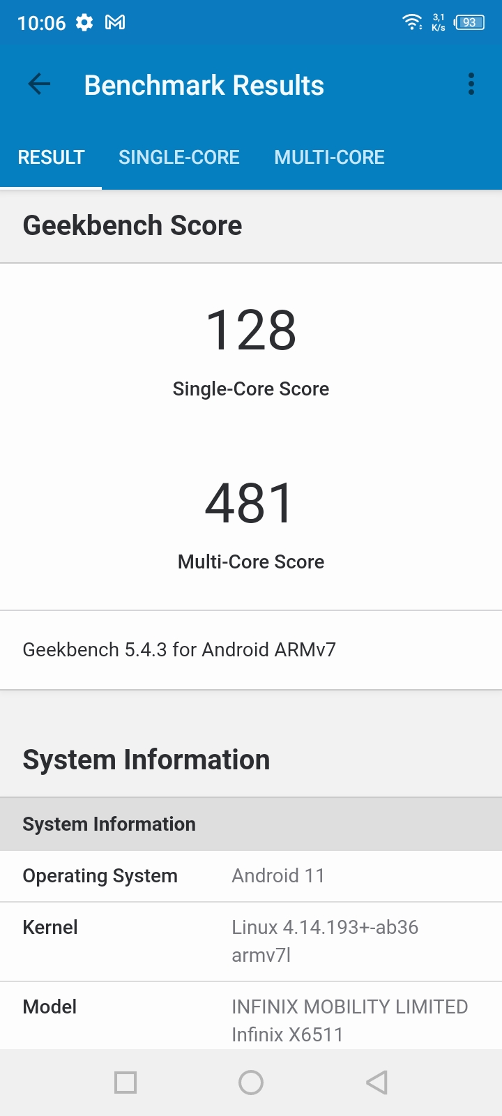 - Geekbench 4: 90, 128/481