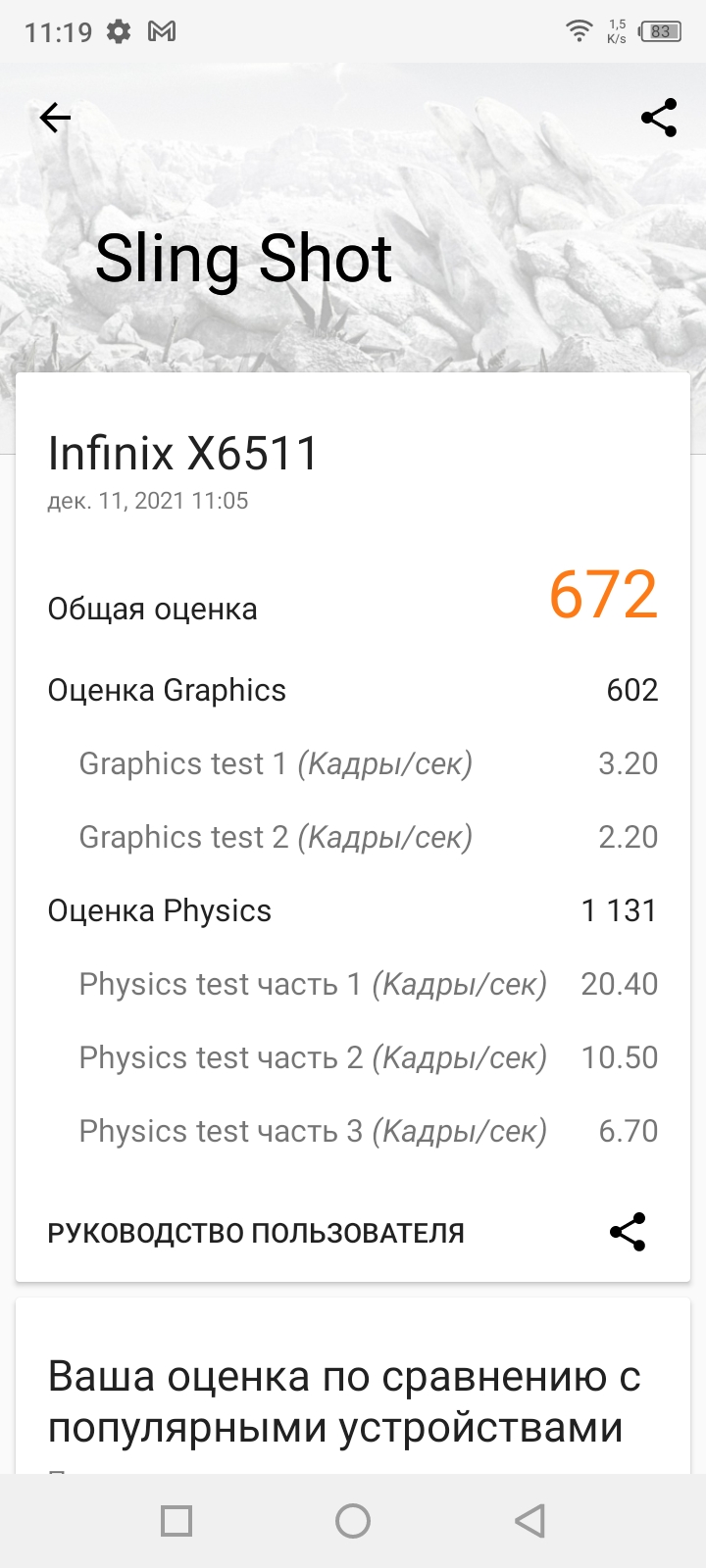 Добавим полученные данные в таблицу для сравнения результатов с другими устройствами.