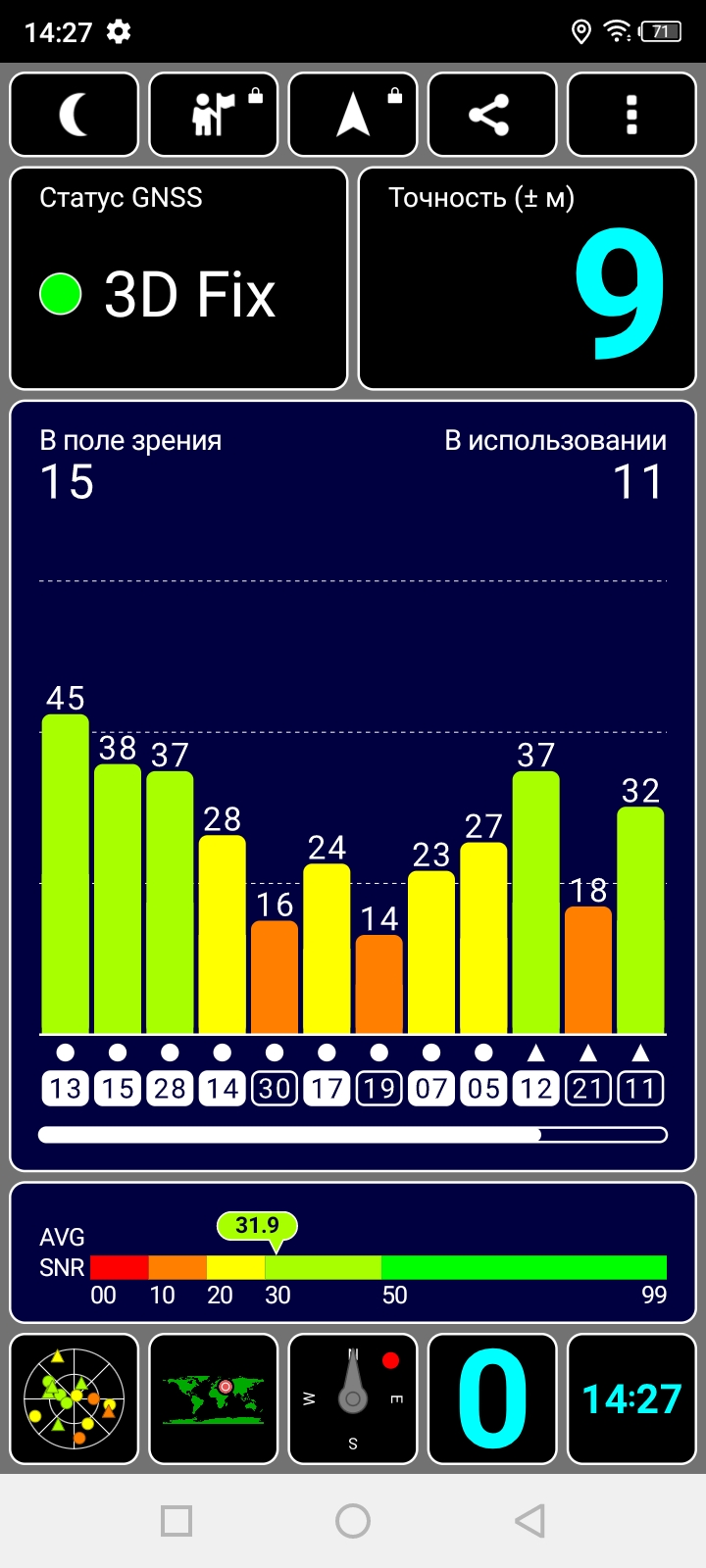 Холодный старт GPS показал не самые радужные результаты даже по истечению 1 минуты, оставаясь в точности 9 метров.