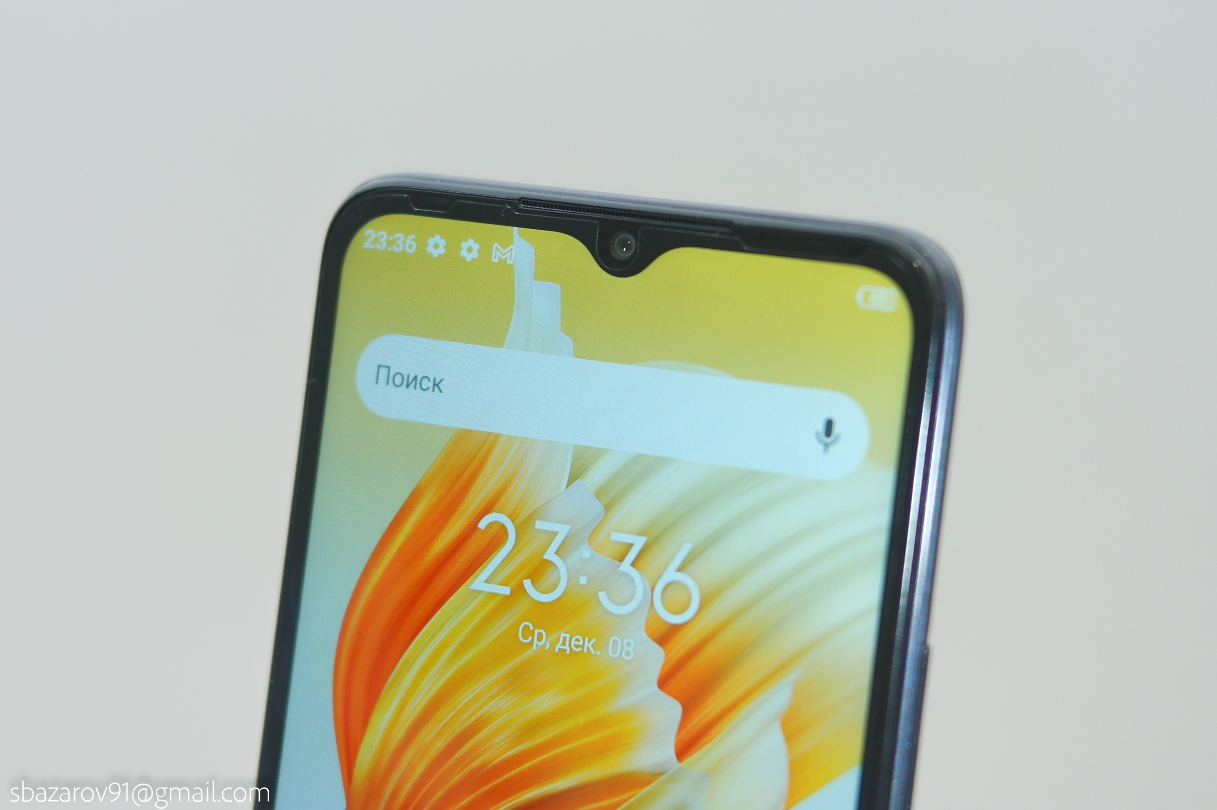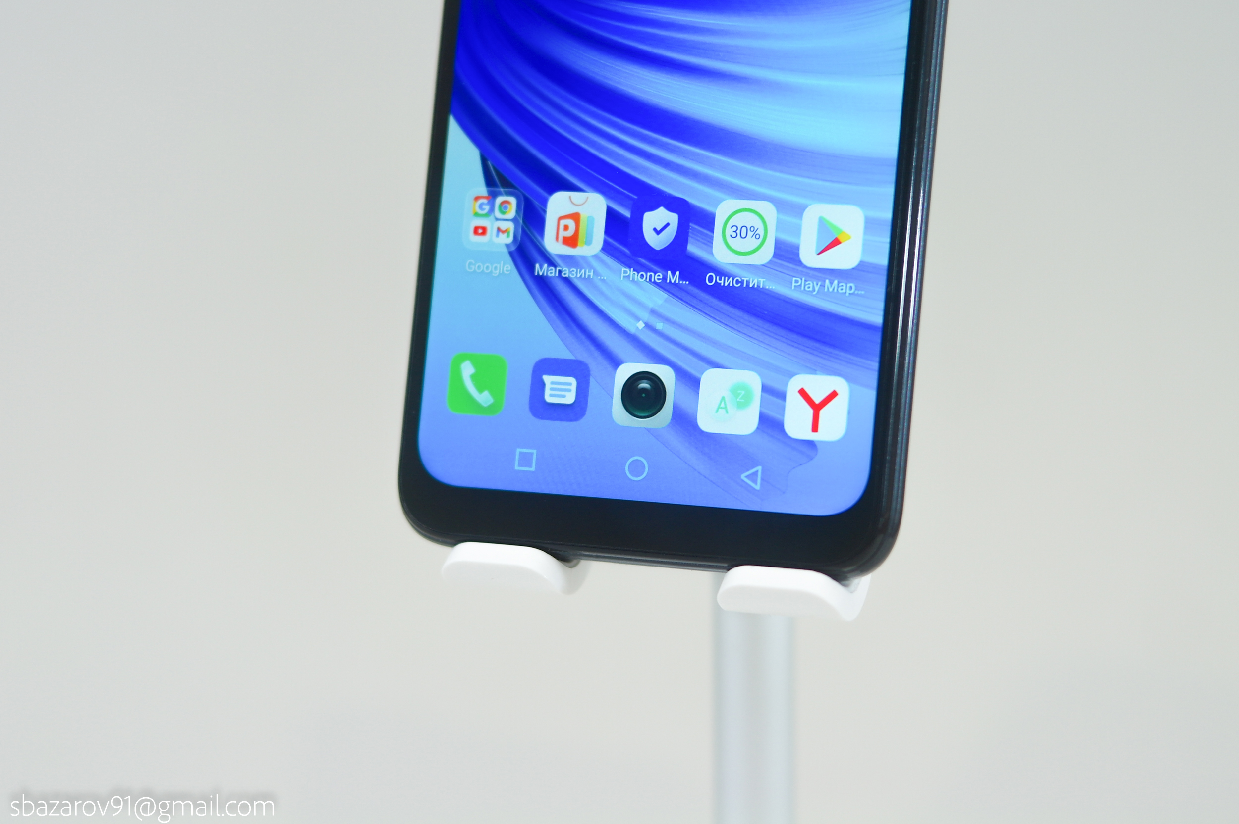 Рамки по периметру экрана хоть и большие, но неудобств не доставляют. Верхняя рамка включает в себя каплевидный вырез фронтальной камеры на 5Мр, вспышку, датчик приближения и освещения.