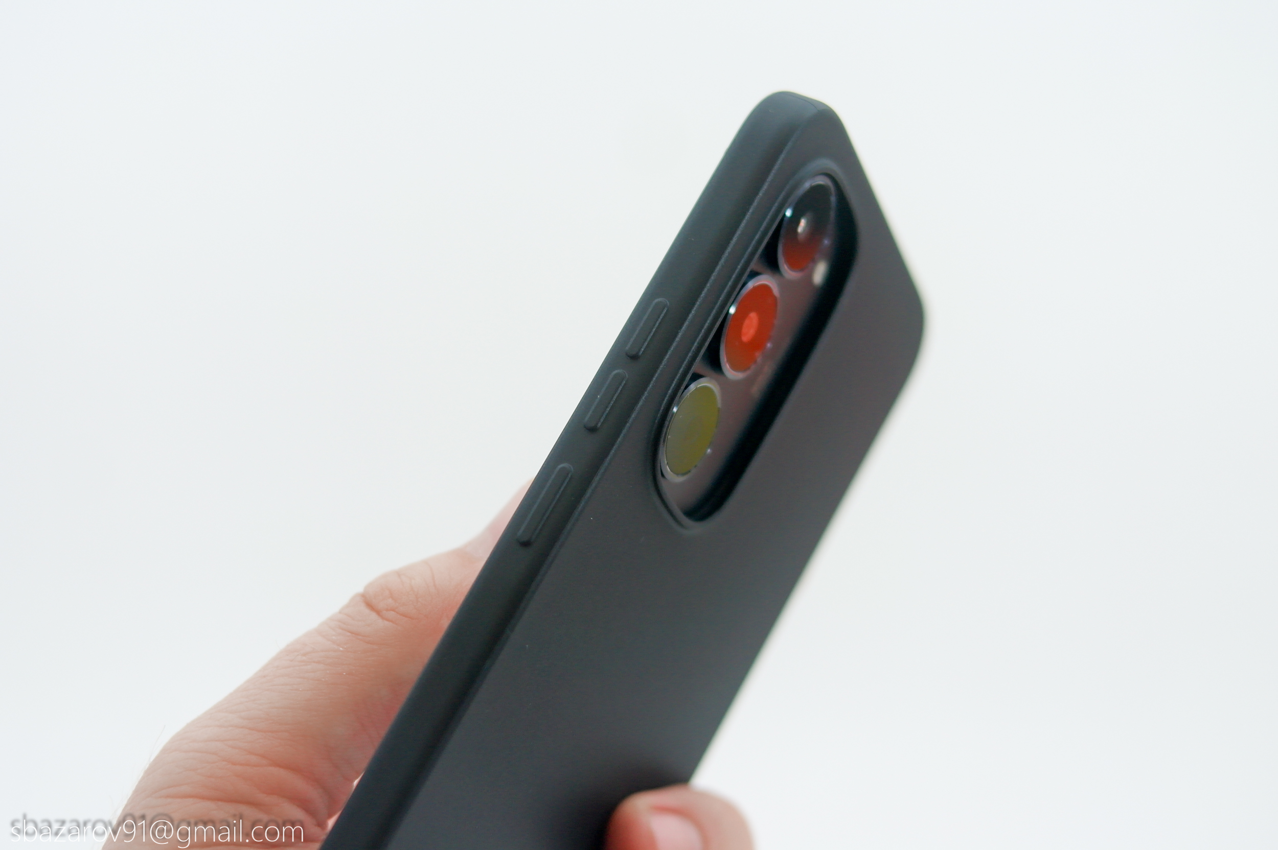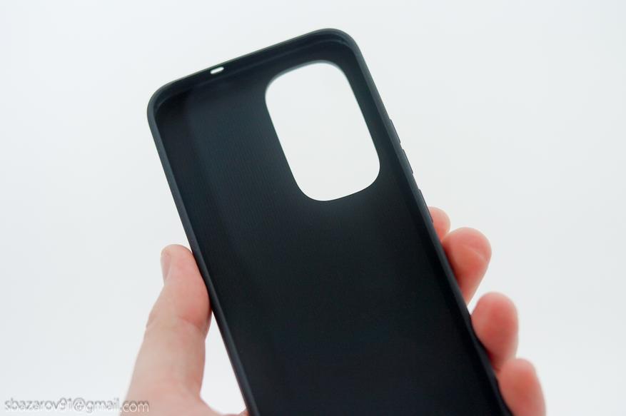 Комплектный чехол из резины с шершавым покрытием сидит хорошо, почти не увеличивая размеры телефона.