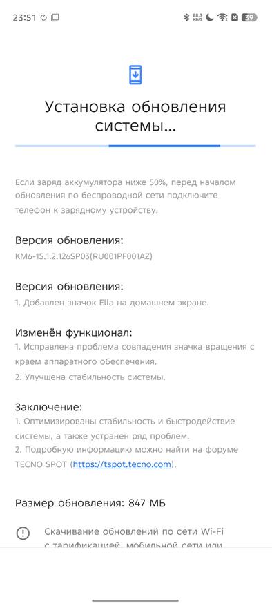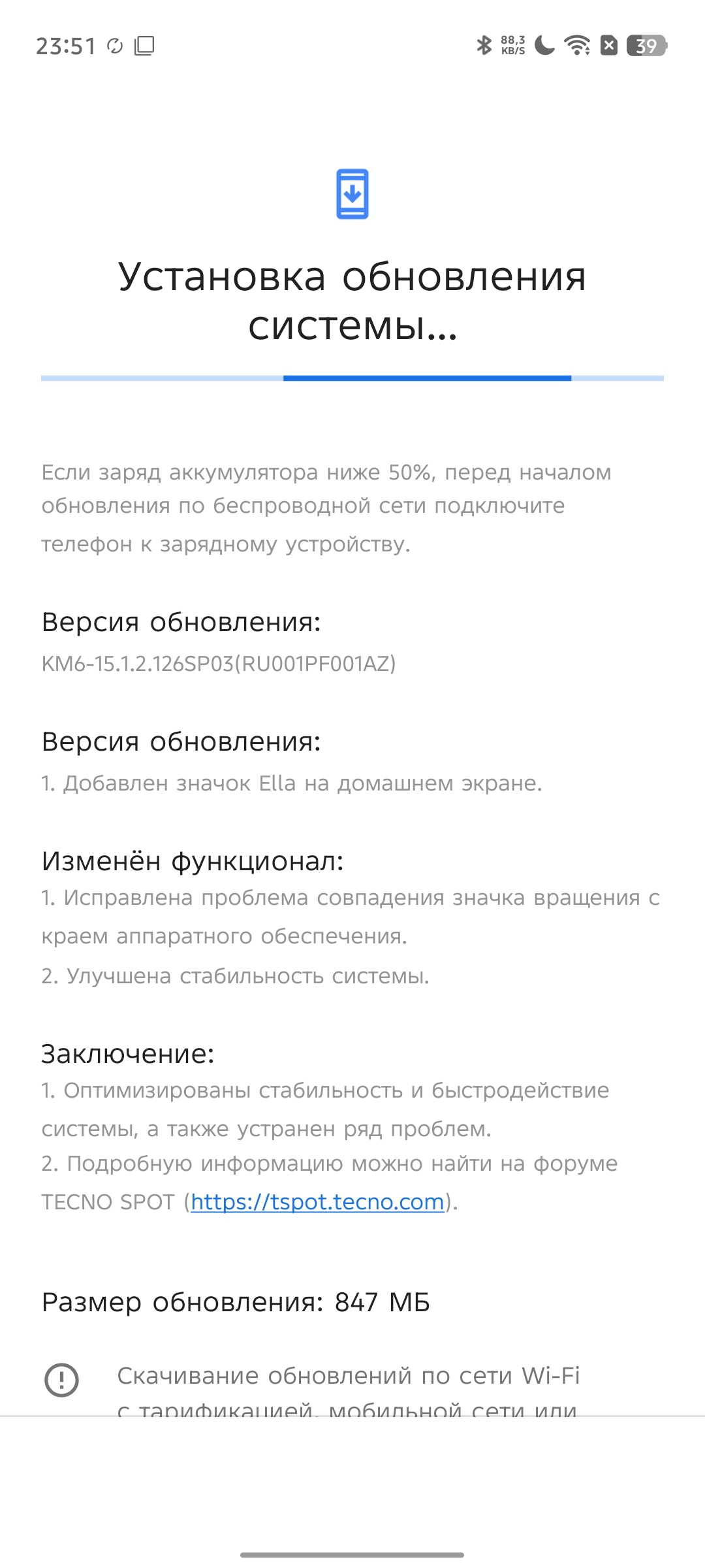 После подключения к Wi-Fi TECNO Spark 40 Pro начал устанавливать обновления один за другим, остановившись после третьего обновления.