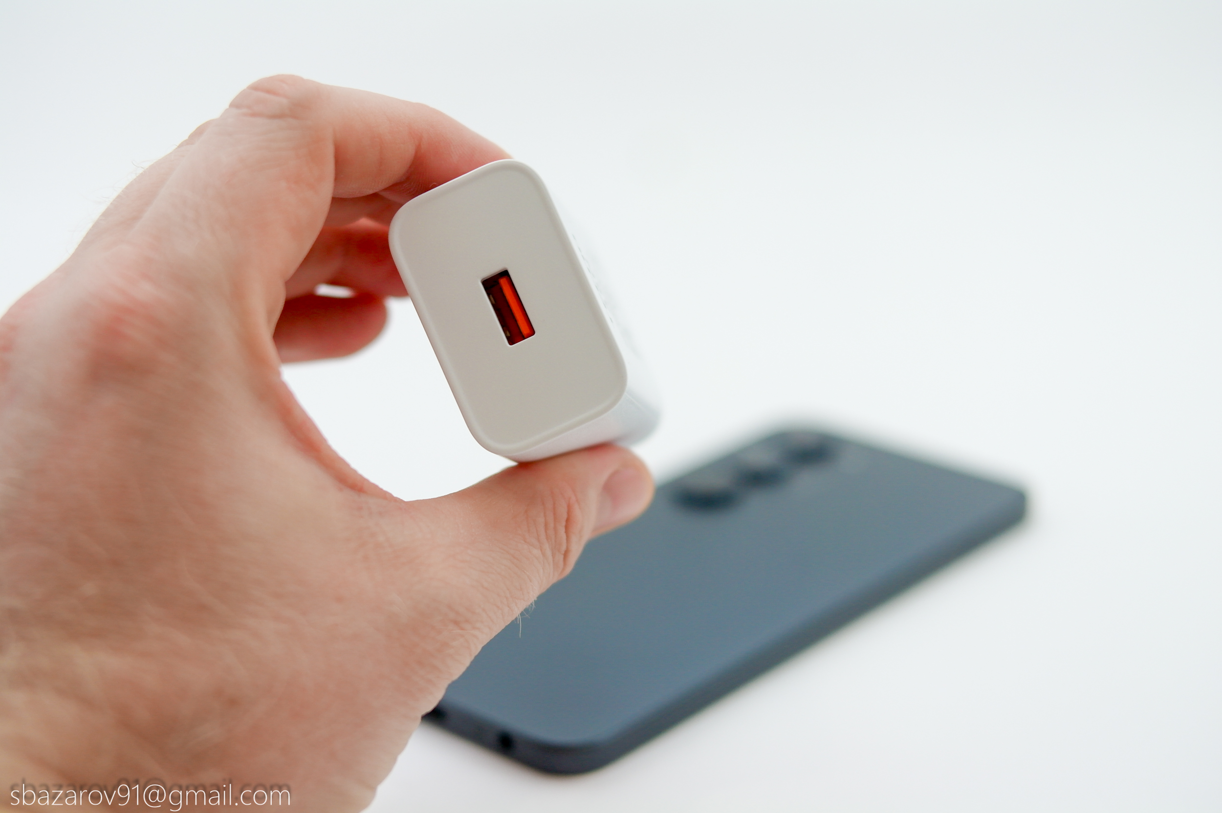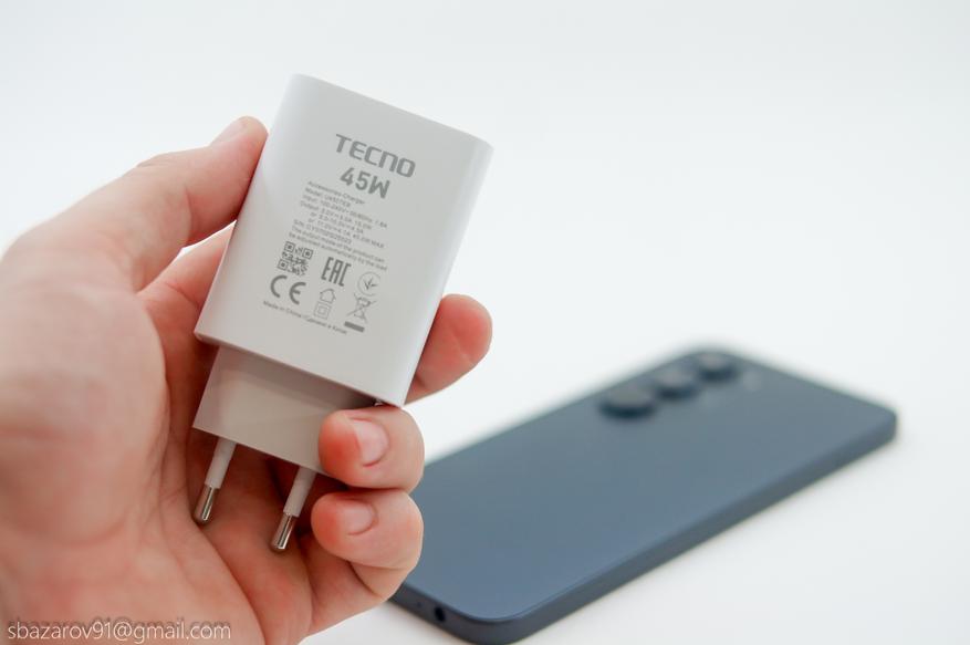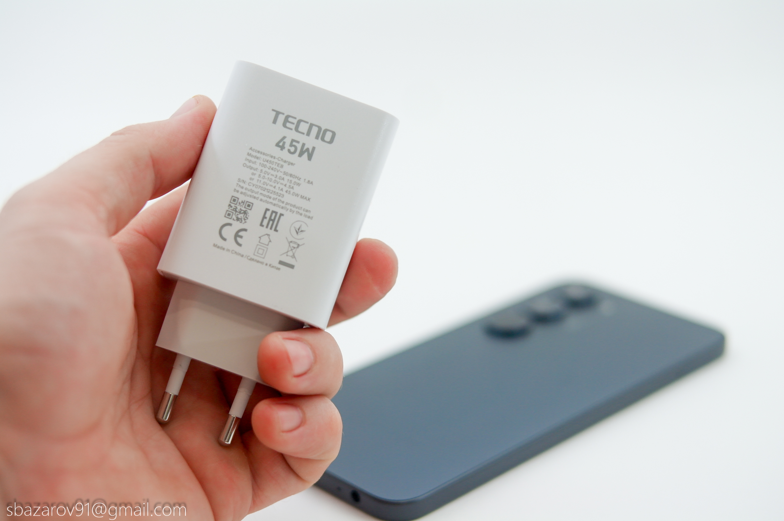 Комплектация включает всё необходимое для эксплуатации: смартфон, защитный чехол, блок питания на 45 Вт и кабель USB. Защитная пленка уже наклеена на стекло с завода.