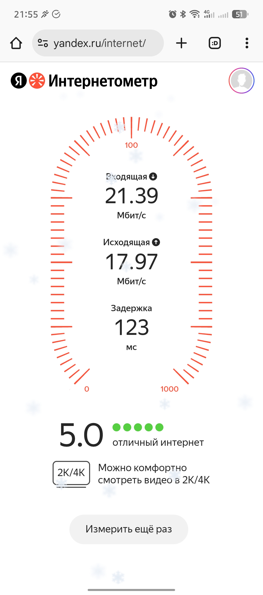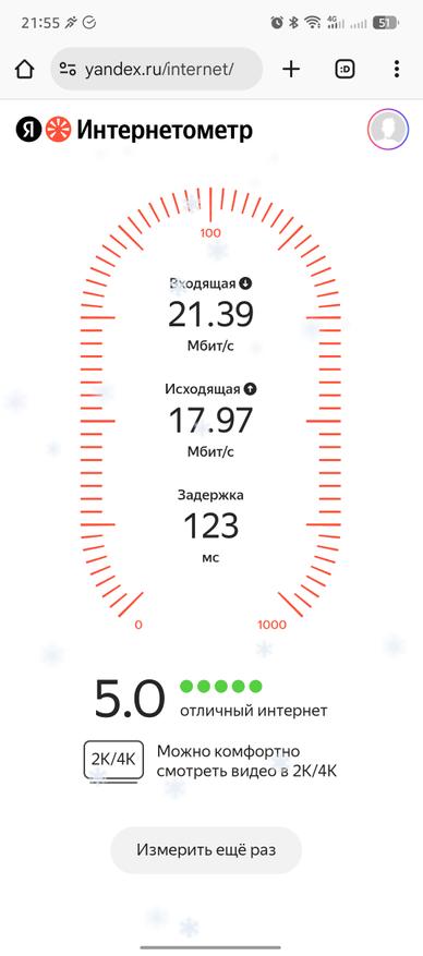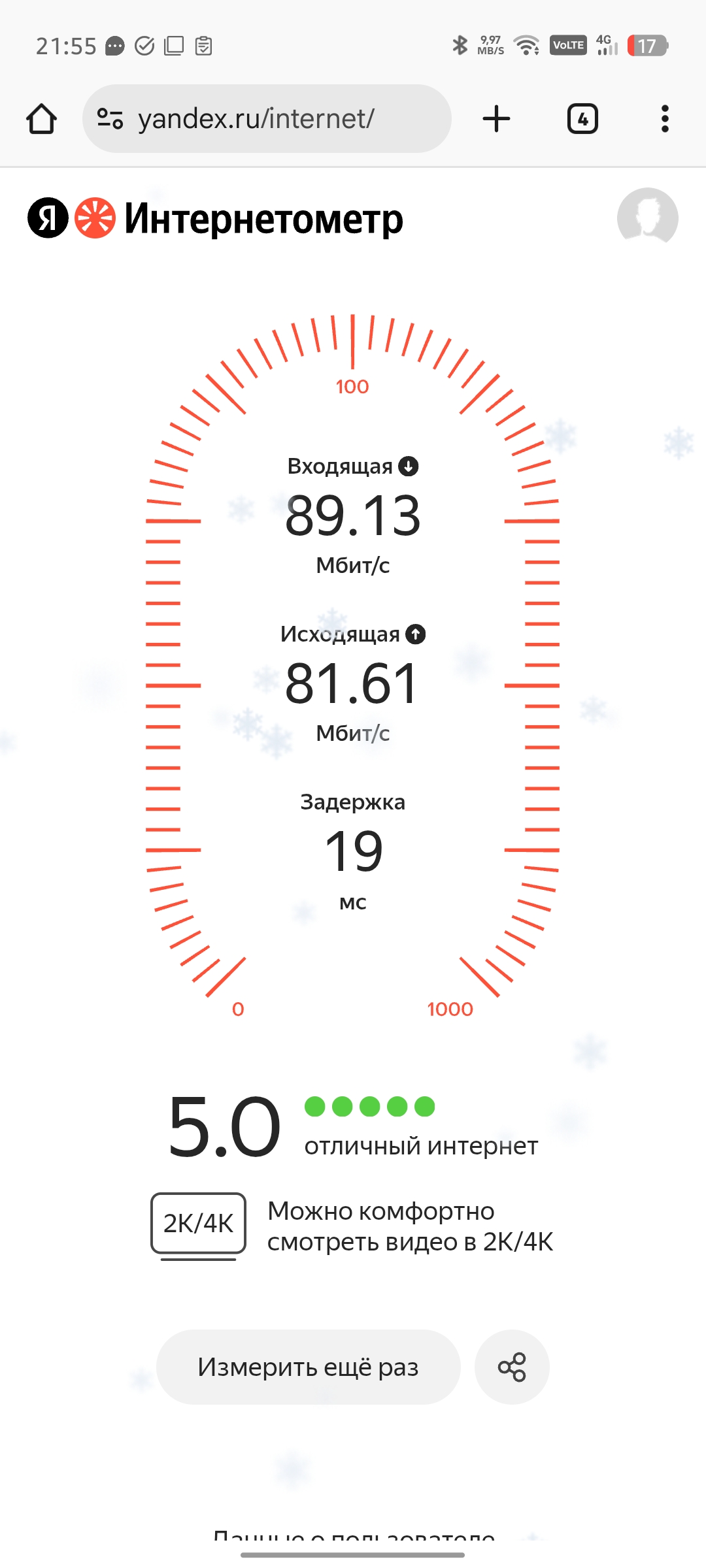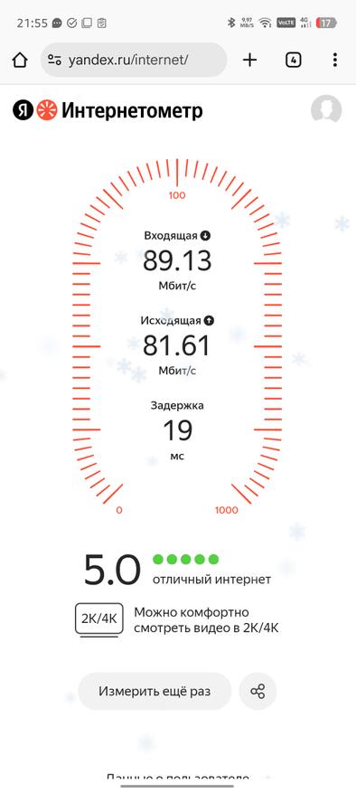 Также TECNO Spark 40 Pro получил улучшенную Wi-Fi-антенну с технологией Super Wi-Fi 2.0 для увеличения стабильности соединения. Для наглядности я провел один тест, проверив качество приема/передачи в дальней комнате квартиры. Сравнивать будем с более производительным «братом» Infinix NOTE 50 Pro+, вместо классического SpeedTest — Интернетометр от Яндекса.