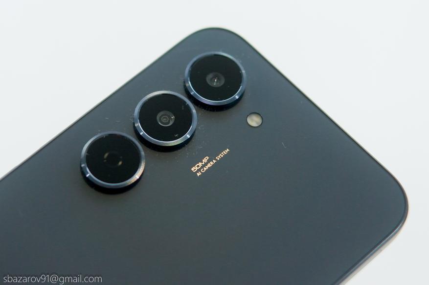 На первый взгляд камерный блок TECNO Spark 40 Pro очень похож на блок в Samsung S25, но на деле отличия колоссальные. TECNO находится в бюджетном сегменте, Samsung же — флагман компании. Поэтому ждать перископического модуля или ультраширокоугольного объектива, увы, не приходится. Да и три колодца по большей части носят декоративный характер, ведь основная камера одна, но с высоким разрешением 50 Мегапикселей (если верить HWinfo, то может быть установлен сенсор 1/2.80″ Hynix HI5022Q или 1/2.88″ OmniVision OV50D40). Снимает камера хорошо, несмотря на отсутствие отдельного модуля для размытия фона, программное размытие справляется довольно неплохо. Динамический диапазон широкий, цветопередача естественная. Для съемки видео присутствует электронная стабилизация (EIS), которая становится доступной при активации режима 1080р@60 к/с, ну, а максимум на что способна основная камера — 2К@30 к/с.
