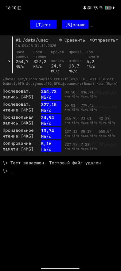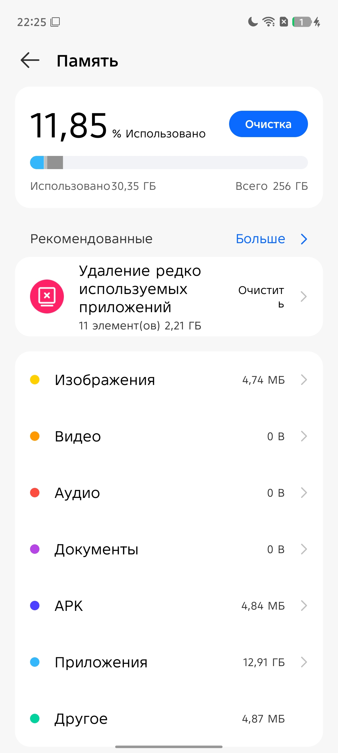 Объем памяти доступен в двух вариациях: 8/128 Гб и 8/256 Гб. В обоих случаях применяется шустрый накопитель UFS 2.2, работающий на скоростях 1046/869 Мб/с (чтение/запись). Оперативную память можно расширить на дополнительные 8 Гб за счет файла подкачки. Общее впечатление от эксплуатации смартфона сугубо положительное, работать одно удовольствие, да и подтормаживаний не замечено.