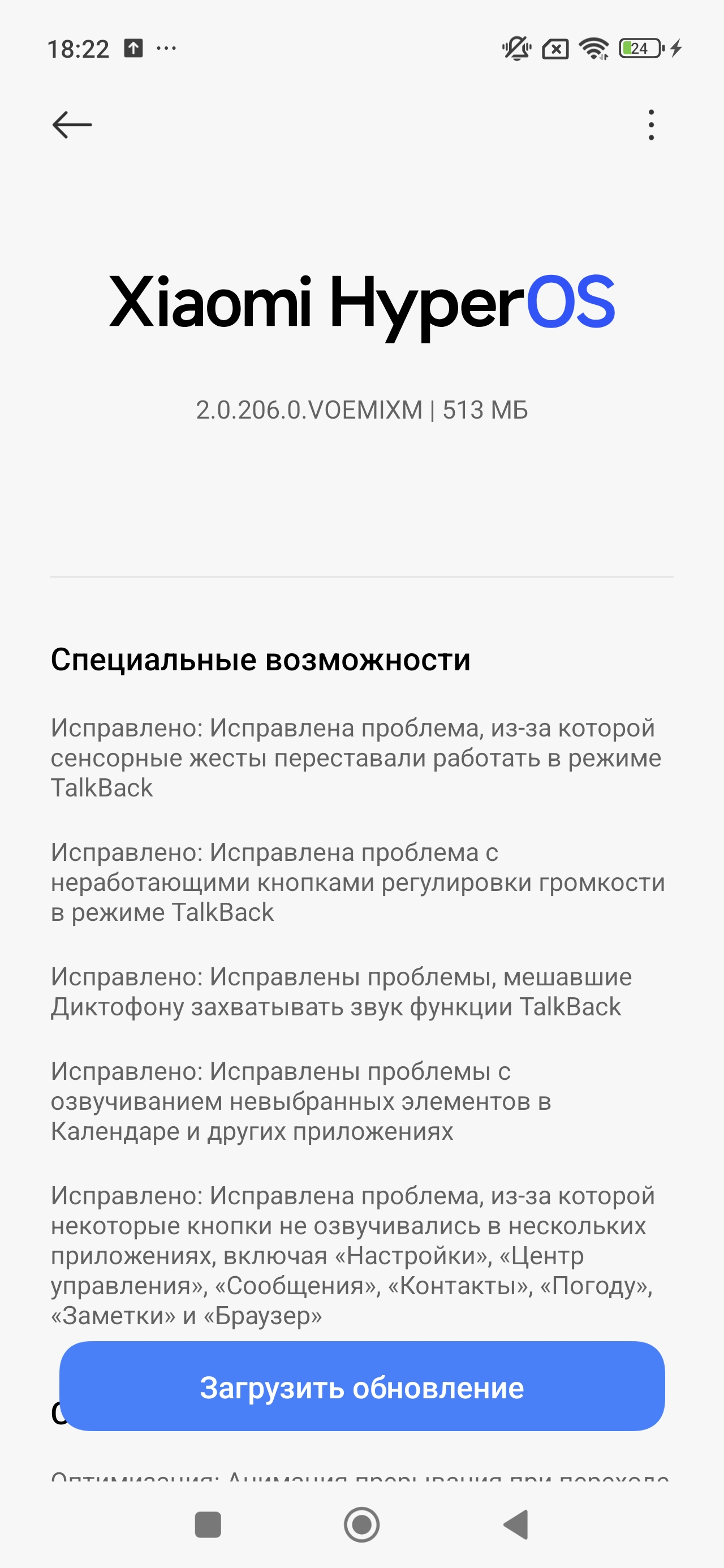 В смартфоне предустановлена операционная система Android 15, но с фирменной оболочкой Xiaomi HyperOS 2, поэтому на несколько лет обновлений можно рассчитывать. На данный момент уже было 2 небольших изменения, которые исправляют ошибки системы.