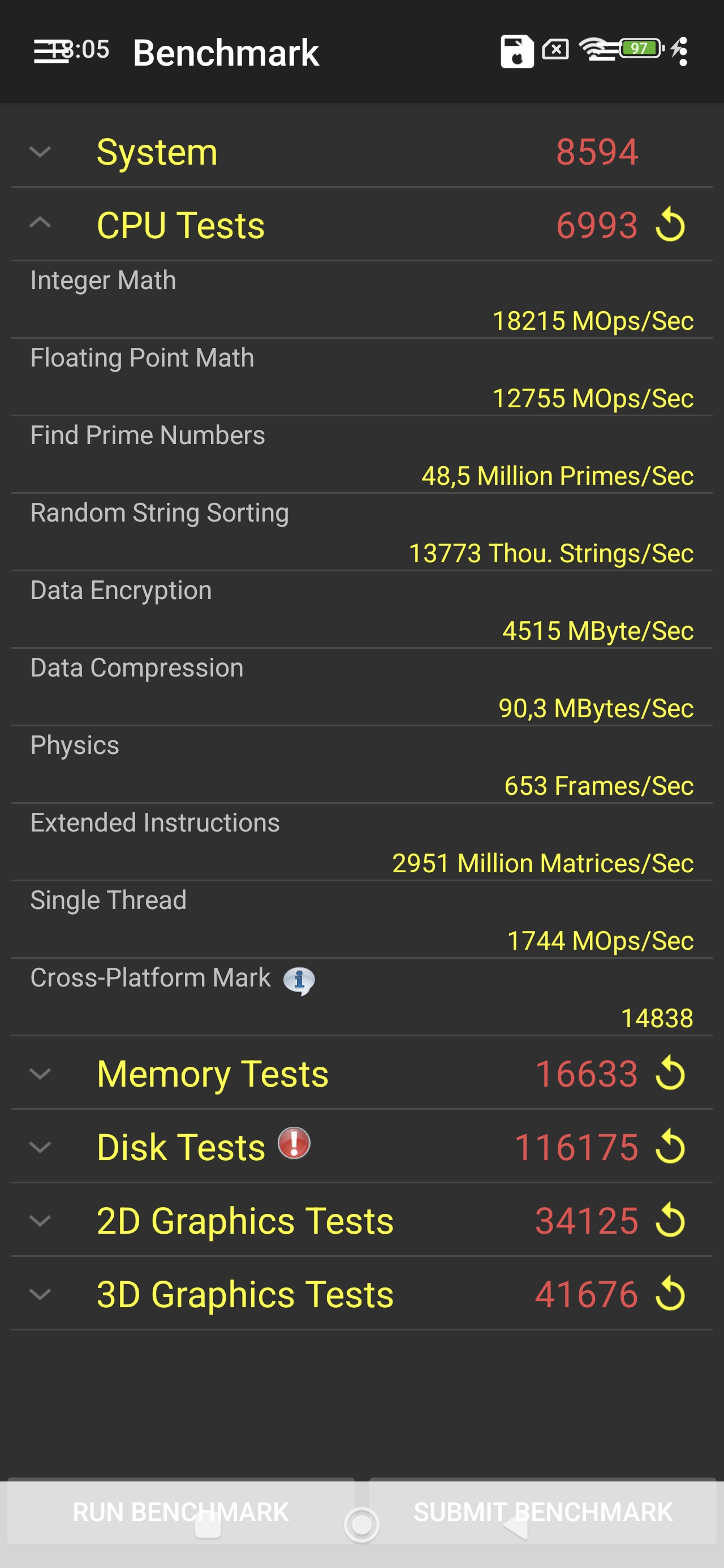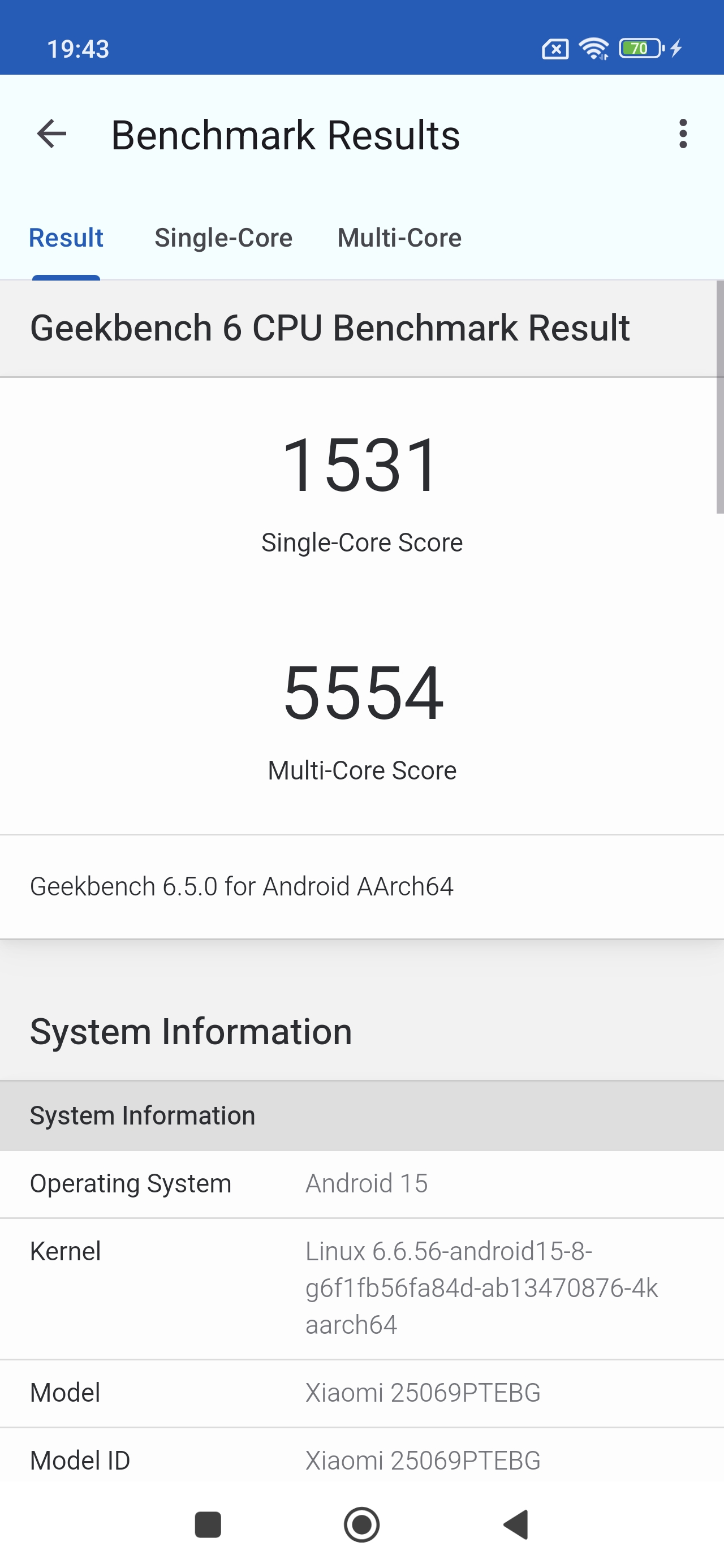 Еще ряд тестов, благодаря которым можно сравнить результаты с другими гаджетами. В тесте Geekbench 6, смартфон Xiaomi 15T набирает в single- (более 1500 баллов) и multi-core (более 5500 баллов).