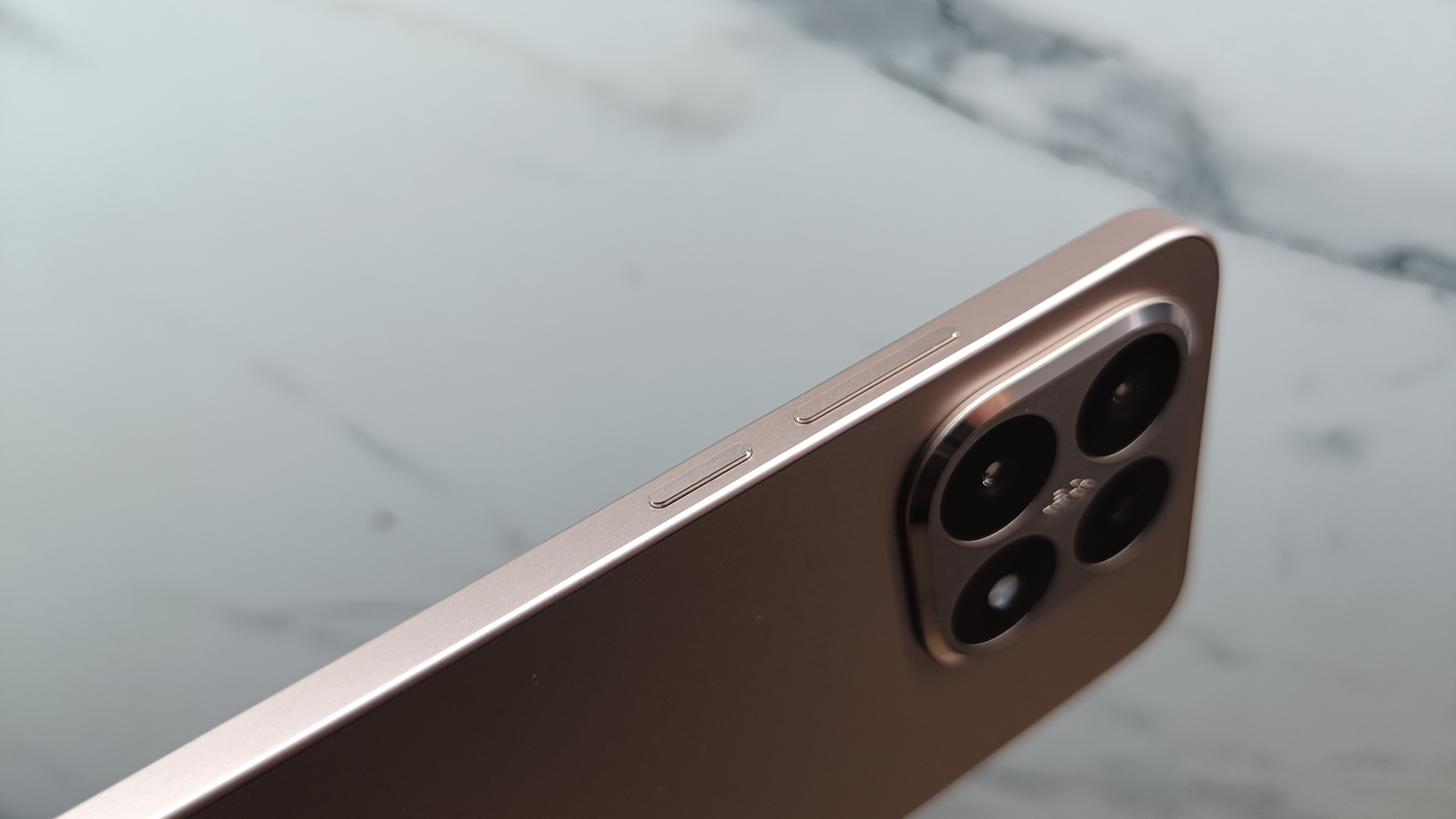 Смартфон имеет несколько расцветок, но именно розовое золото выделяется перед серебристым и черный. Тыльная часть имеет более текстурную структуру, поэтому не видны отпечатки пальцев, да и удерживать значительно проще. На тыльной стороне разместился блок 3 камер и светодиодная вспышка. Модуль камер слегка выступает из корпуса, поэтому рекомендуется дополнительная защита. Между камерами можно увидеть надпись Leica и характеристики основной камеры.