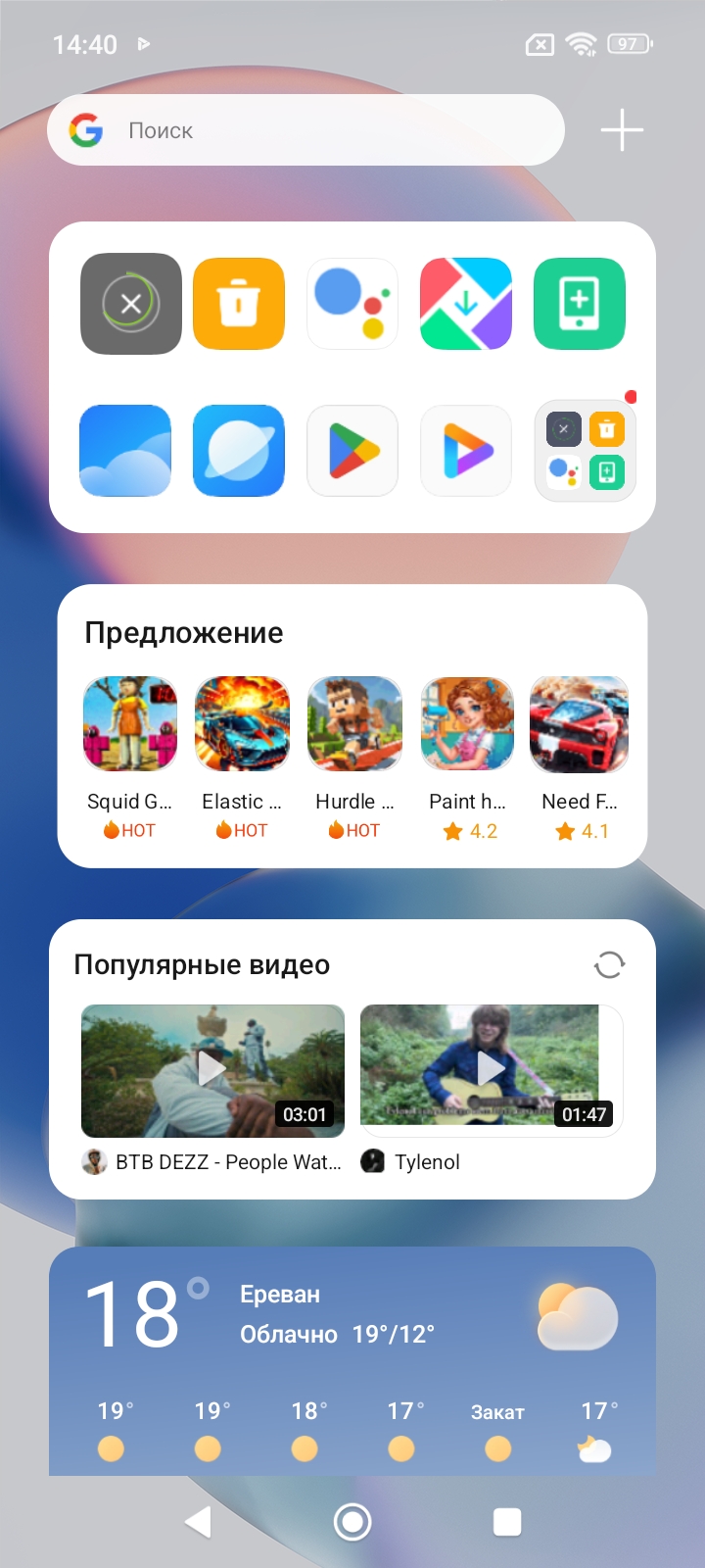 Низкая производительность связана не только со слабой начинкой, но ещё и с перегруженной оболочкой. Поставь Xiaomi сюда Android Go, как на каком-нибудь Redmi A5, проблем было бы меньше, но нет — здесь мы получили полноценную HyperOS 2.0 на базе Android 15. При этом прошивка всё равно урезана по сравнению со старшими моделями: например, здесь нет клонирования приложений, а боковую панель для игр нельзя включить. Из дополнительных функций здесь есть некоторые жесты, кастомизация интерфейса, запись телефонных разговоров и, в общем-то, всё. Реклама в системных приложениях есть, причём порой в самых неожиданных местах: например, когда я менял обои на рабочем столе, мне пришлось посмотреть её сразу два раза. Стыдно должно быть, Xiaomi! Также встроенные программы регулярно присылают мусорные уведомления, что, к счастью, можно отключить.