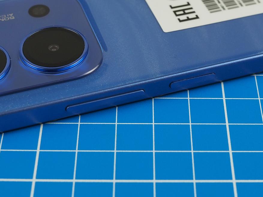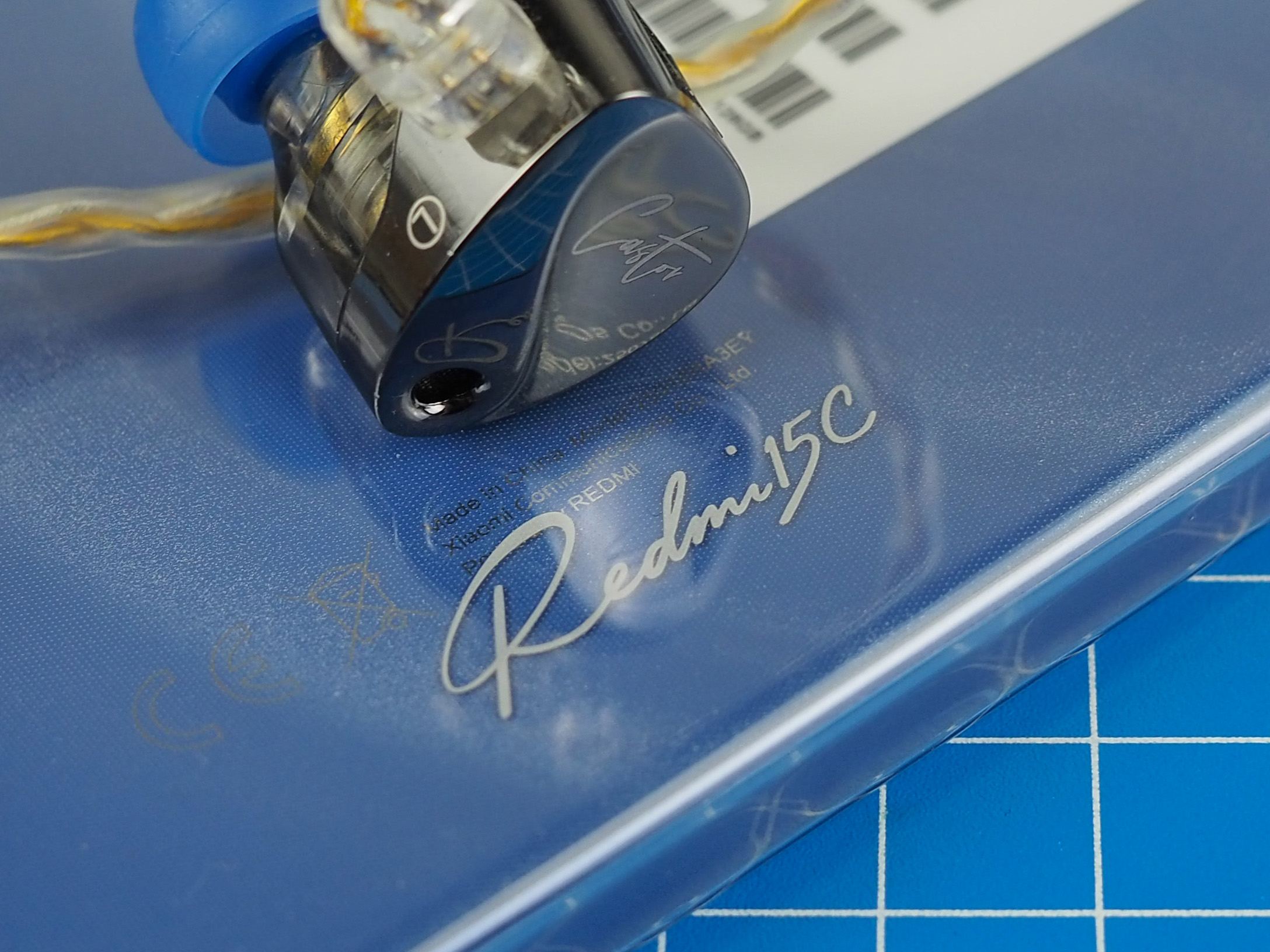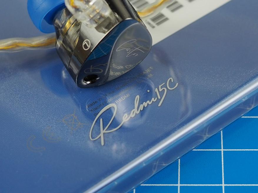 В отличие от предшественника, Redmi 15C выглядит более «приземлённо», поэтому единственным методом привлечения внимания остались яркие расцветки. Их тут — на любой вкус: матовые чёрная и зелёная да глянцевые синяя и розовая. У меня на обзоре третья из них. Также спинку решили украсить каллиграфической надписью, выглядящей так, словно глава Redmi лично расписался на свежеизготовленном экземпляре. Вся эта эстетика напоминает мне Chi-Fi наушники от какой-нибудь KZ.