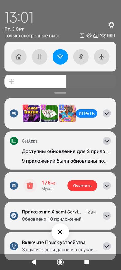 Одной из фишек смартфона стал здоровенный 6,9-дюймовый экран. Разрешение у него невелико (1600x720), но в большинстве ситуаций вы этого не заметите: нужно буквально приглядываться в надписи и иконки, чтобы увидеть в них какую-то нечеткость. Яркости на солнце вполне хватает, информация остается читаемой. Цвета настроены так же, как и у других Xiaomi: либо они слишком насыщенны, либо уходят в желтизну, благо, нам всё ещё дают возможность настроить цветовую температуру. Заявленную частоту в 120 Гц мы сможем увидеть только в настройках, в остальных случаях она падает до 90, а то и до 60 Гц. И это неудивительно, учитывая, какой процессор здесь стоит.