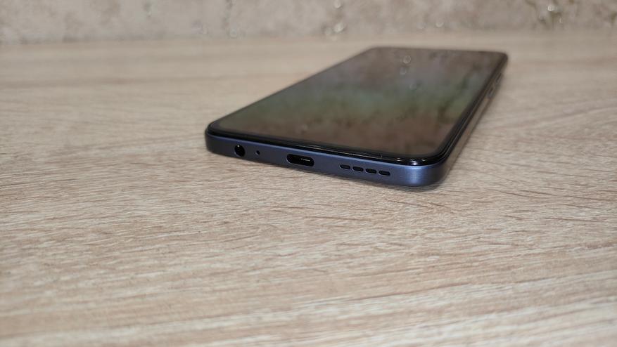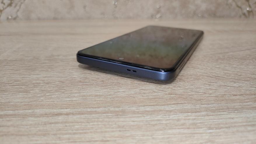 Лоток для SIM находится слева, а все кнопки (питания и качелька громкости) справа. Сверх расположен один из динамиков, и да, их тут два, они образовывают стереопару. На нижнем торце есть решетка динамика, основной микрофон, 3.5 мм миниджек, а также USB Type-C. Набор привычный и понятный.