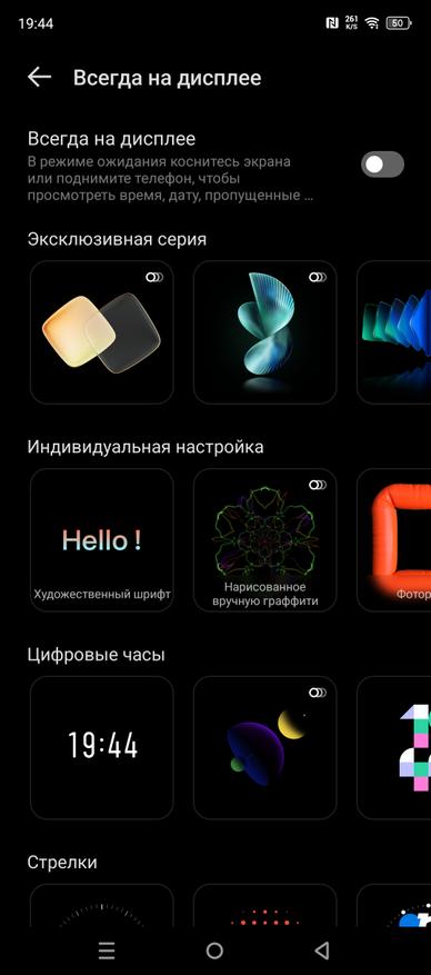AOD есть почти всегда, если установлен AMOLED экран. Смартфон Infinix HOT 50 PRO не исключение, здесь эта функция есть. Но ВСЕГДА экран не показывает информацию, только в течение 10 секунд, а дальше нужно хотя бы прикоснуться к нему и он снова «оживает». Можно настроить, что будет отображать экран в данном режиме, просто время, или уведомления о сообщениях.