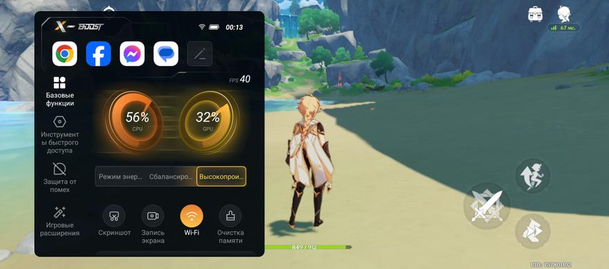 Экран смартфона имеет диагональ 6.78″ выполнен по технологии AMOLED. С защитным стеклом Panda Glass, которое имеет неплохое олеофобное покрытие. Разрешение для такой диагонали подобрано оптимальное — 1080*2460 точек с максимальной яркостью 520 нит. Частота обновления до 120 Гц, это означает, что можно выбирать один из нескольких параметров.