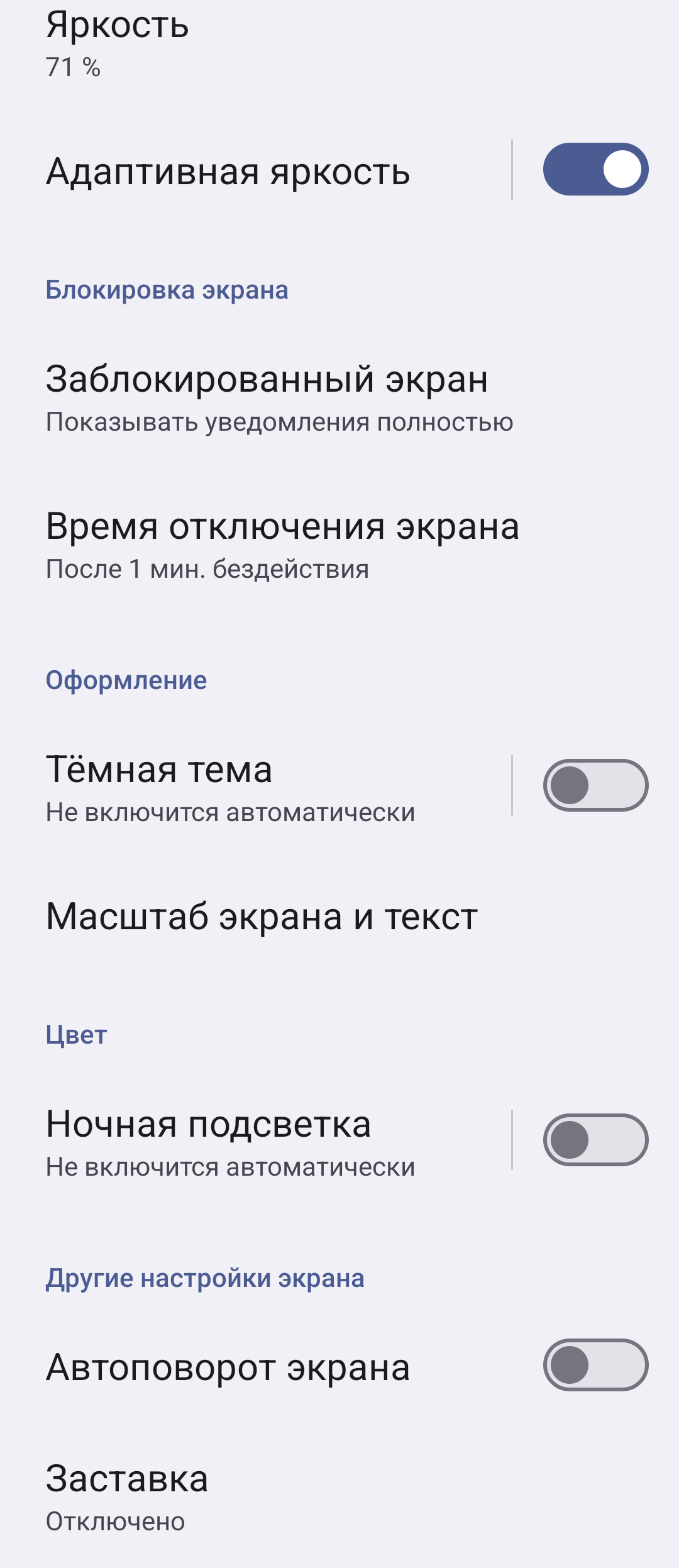 Система не самая сложная, настроек не так много, но есть опции по управлению размерами значков, подсветкой, темным режимом, обоями на рабочем столе.