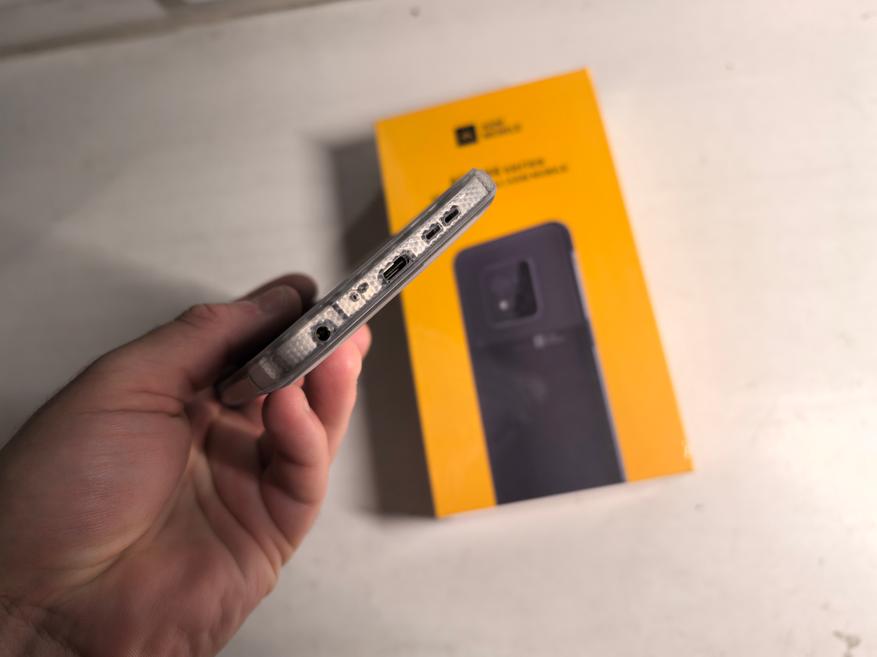 Телефон находится в коробке жёлтого цвета. На ней практически отсутствует информация по техническим характеристикам, кроме указания о поддержке 5G и защиты MIL STD 810H. Первая характеристика уже намекает, процессор не из серии Unisoc T606 или MediaTek G99. У двух названых нет поддержки сетей пятого поколения.