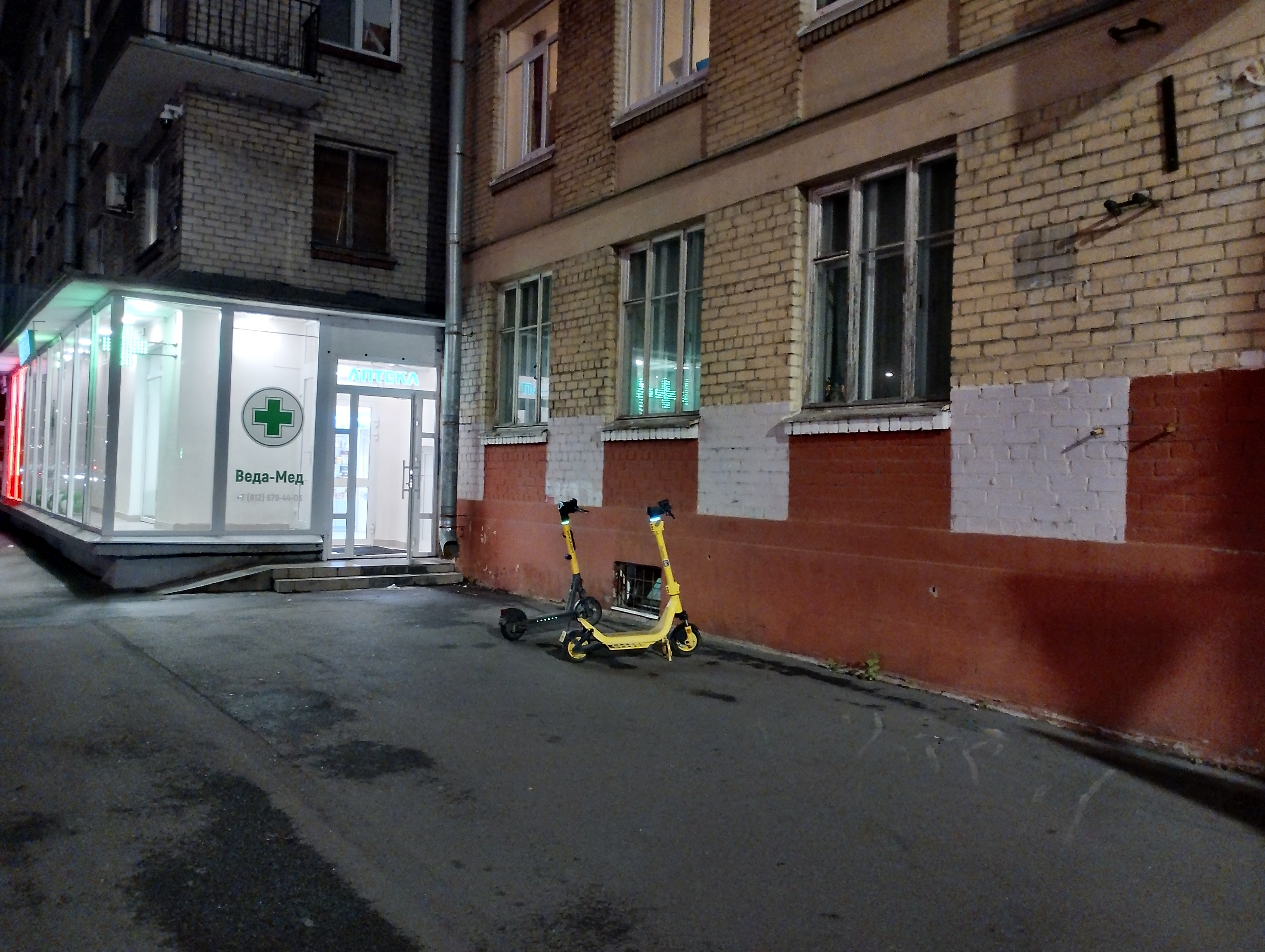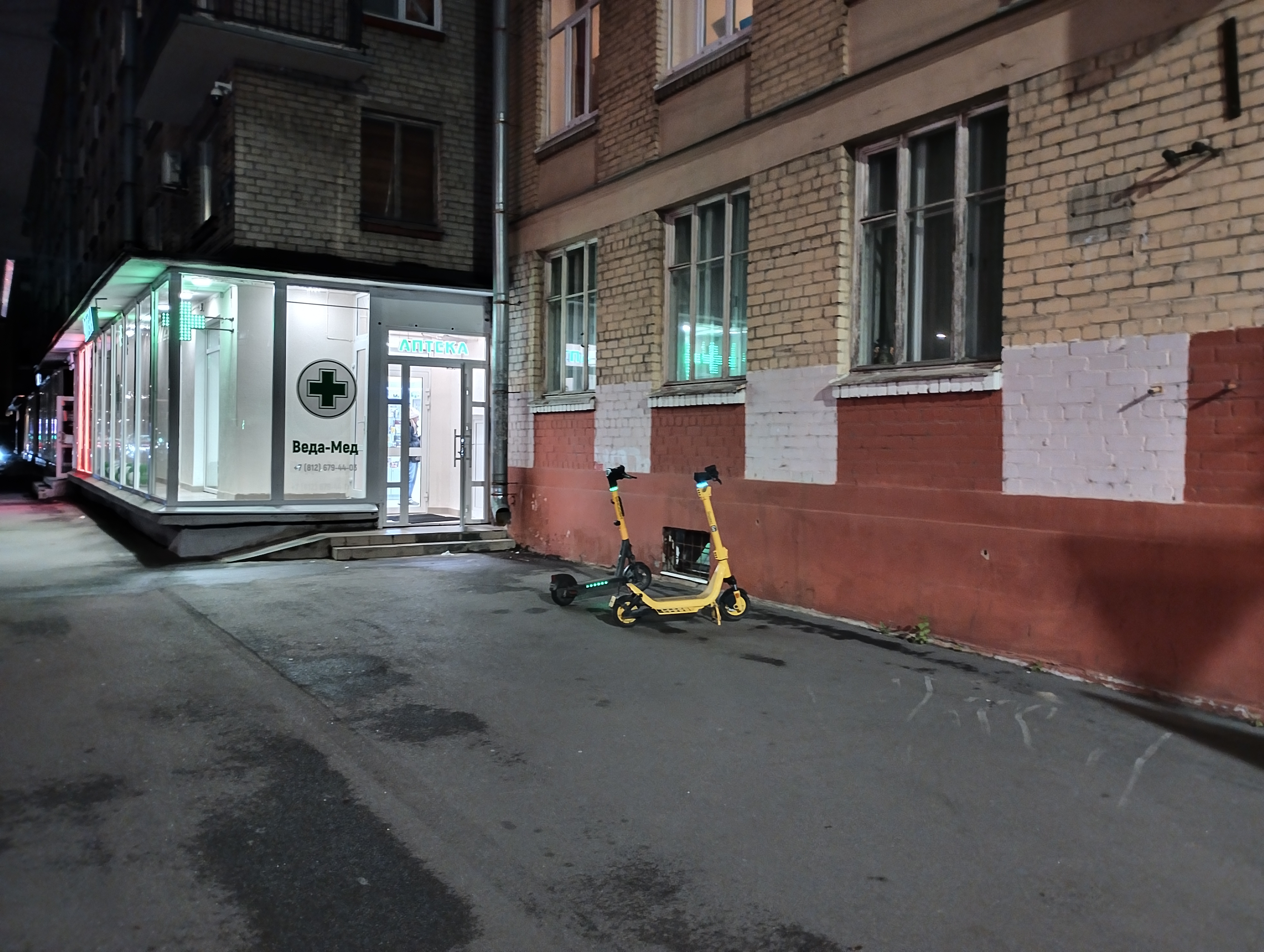 Есть режим ночной съёмки. Привел пример фотографии с ним и сравнению с обычным.