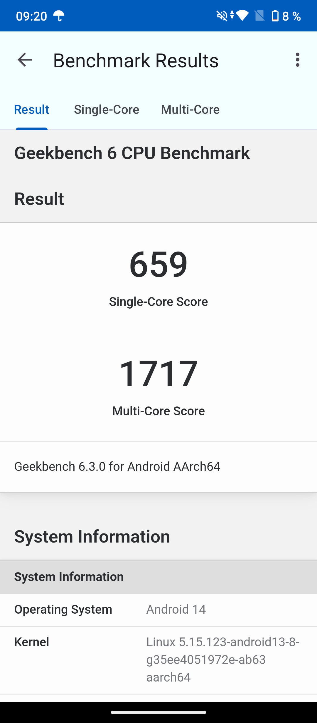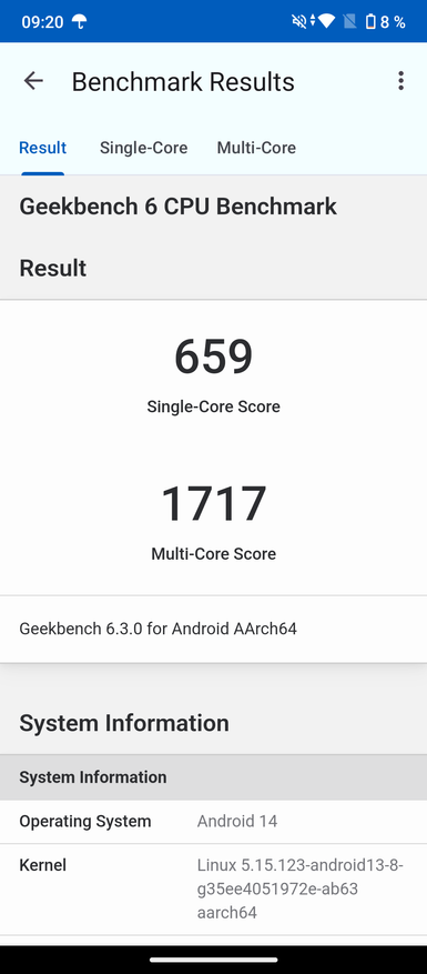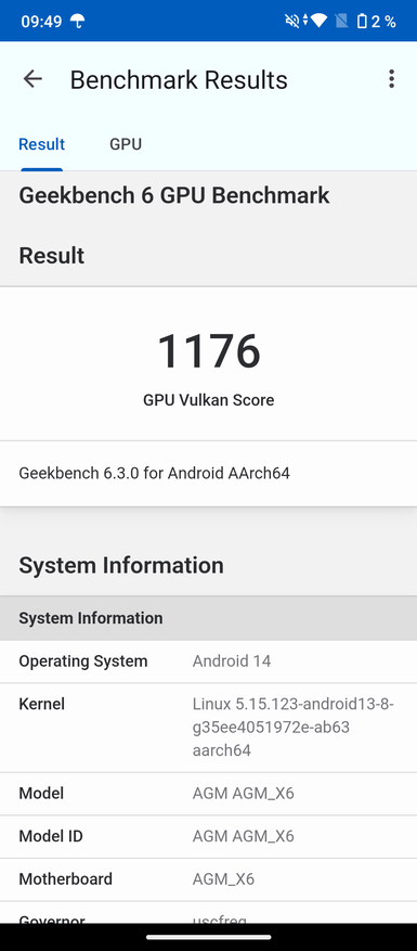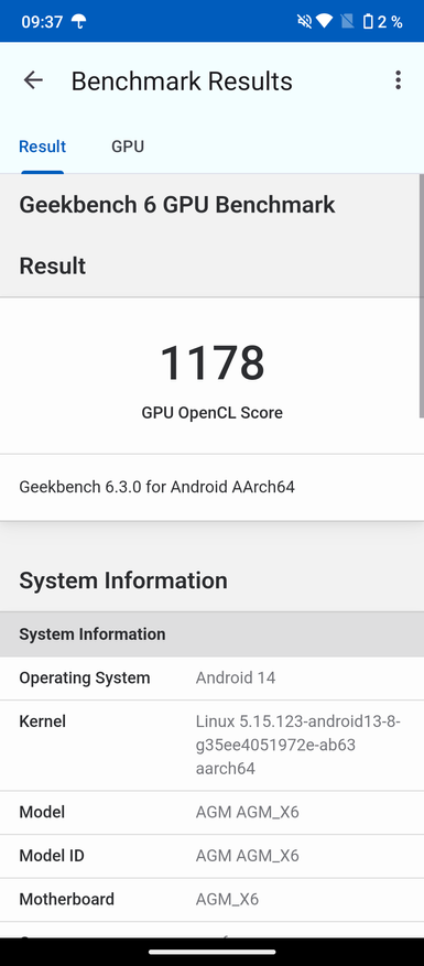 Набираемых баллы в одно-, многоядерном случаях — 659, 1717, в тестах Vulkan и OpenCL — 1176, 1178. Для сравнения, смартфон Doogee Blade 10 Pro (T606) (обзор здесь) в таких тестах набирает 373, 1345 и 458, 457, соответственно. Blackview A200 Pro (G99) (обзор здесь) — 728, 2043 и 1327, 1308, соответственно.