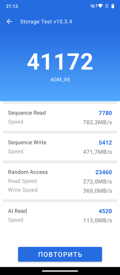 Скорость случайных чтения и записи больше 100МБ/с, поэтому лагов, подвисаний или тормозов в работе с интерфейсом не будет. AGM X6 поддерживает до 10 касаний экрана.