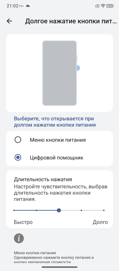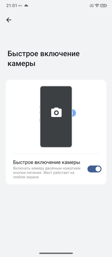 Как и в других телефонах, есть или управление с помощью клавиш, или жестами. По удержанию кнопки включение можно вызывать меню питания телефона или голосового помощника. Его можно вызывать еще сдвигом по нижней части корпуса, поэтому кнопке можно оставить стандартное действие. Опция по двухкратному нажатию камеры в современные телефоны, если не ошибаюсь, пришла как раз от защищенных. Это удобное быстрое действие. Если помните, раньше была реклама, в которой камера телефона запускалась за 0,5 с; вроде бы это был Motorola, но могу ошибаться. Сейчас такой скорости не хватает даже флагманам.