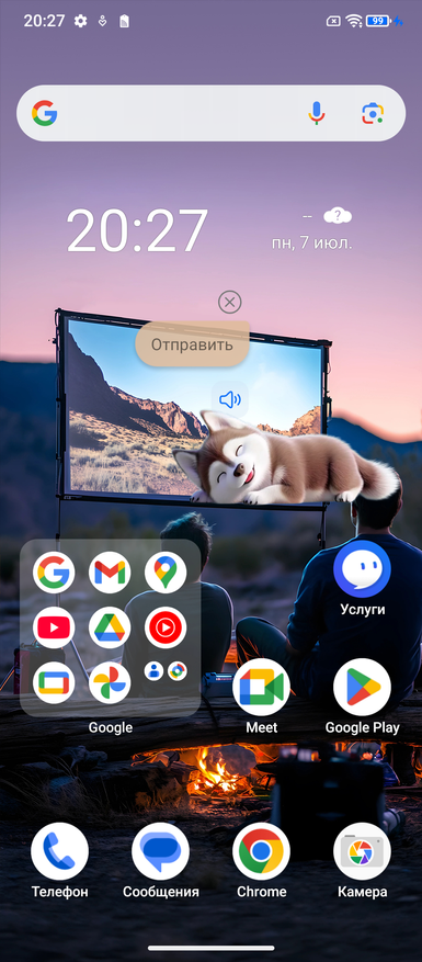 У телефона есть множество опций вне системы. Есть отдельный интеллектуальный помощник, с которым можно вести беседу, задавать вопросы, просить найти информацию в интернете. Работает он без дополнительных настроек,