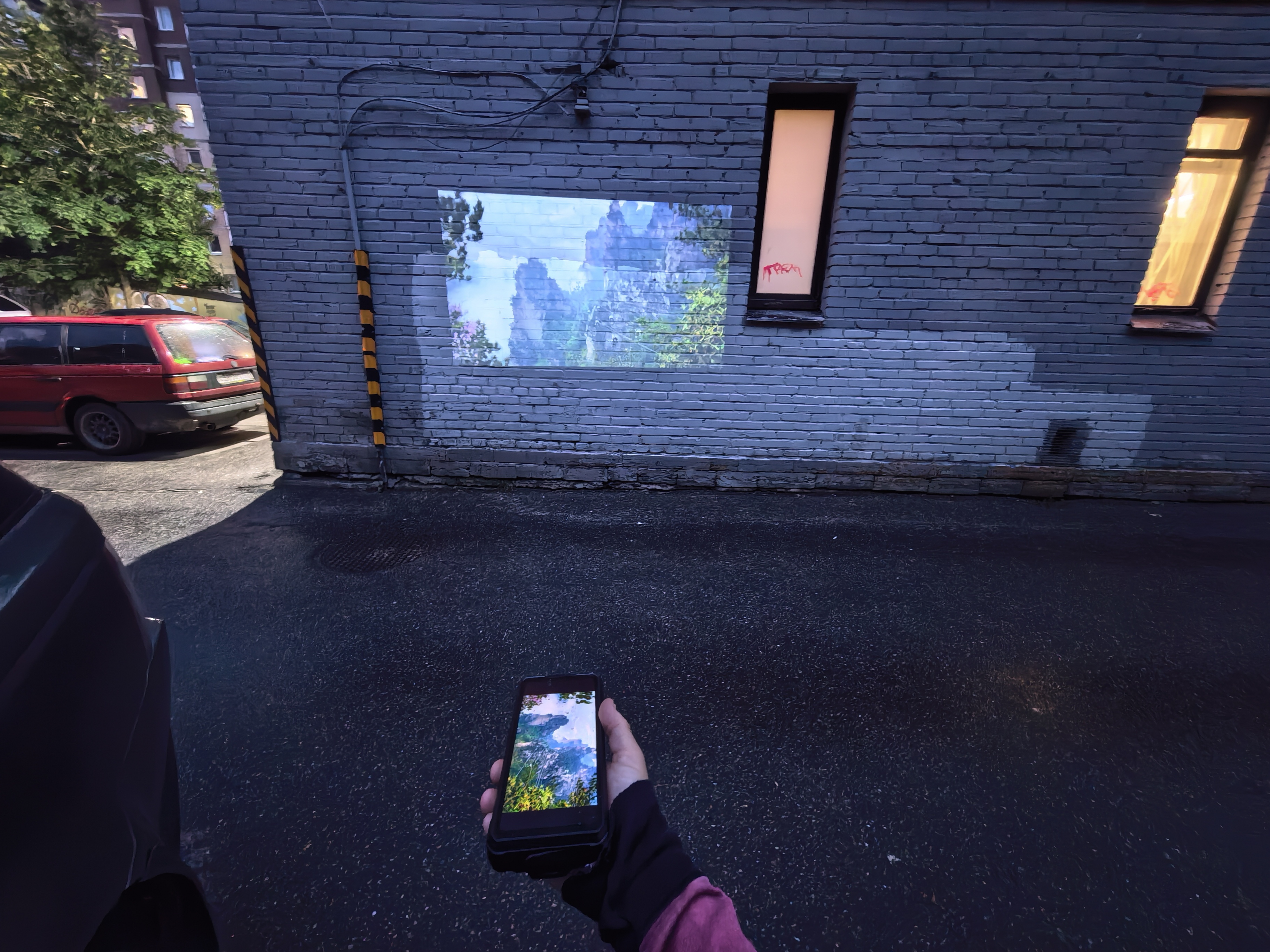 Следующие примеры сделал на улице. Именно по таким примерам мне кажется, яркость у проектора смартфона достаточная и лучше, чем видел раньше. Восприятию яркости еще способствует качественный фокус. О его настройке сказал в самом начале разделе про проектор.