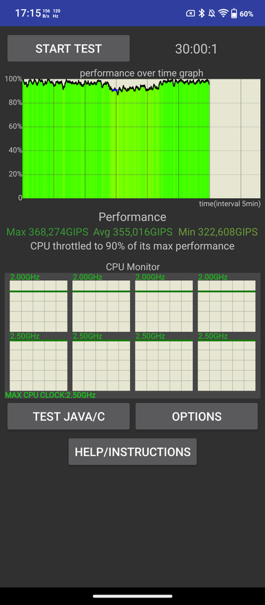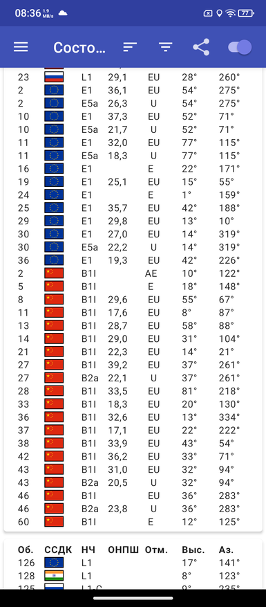 По скорости случайной записи и чтения у телефона вполне приличные показатели, 536 и 752 МБ/с. Средний результат на троттлинг в течение 30 минут на 100 потоках — 355016 гипсов. Спутники телефон находит быстро. На третьем скриншоте показал, что видны разного уровня.