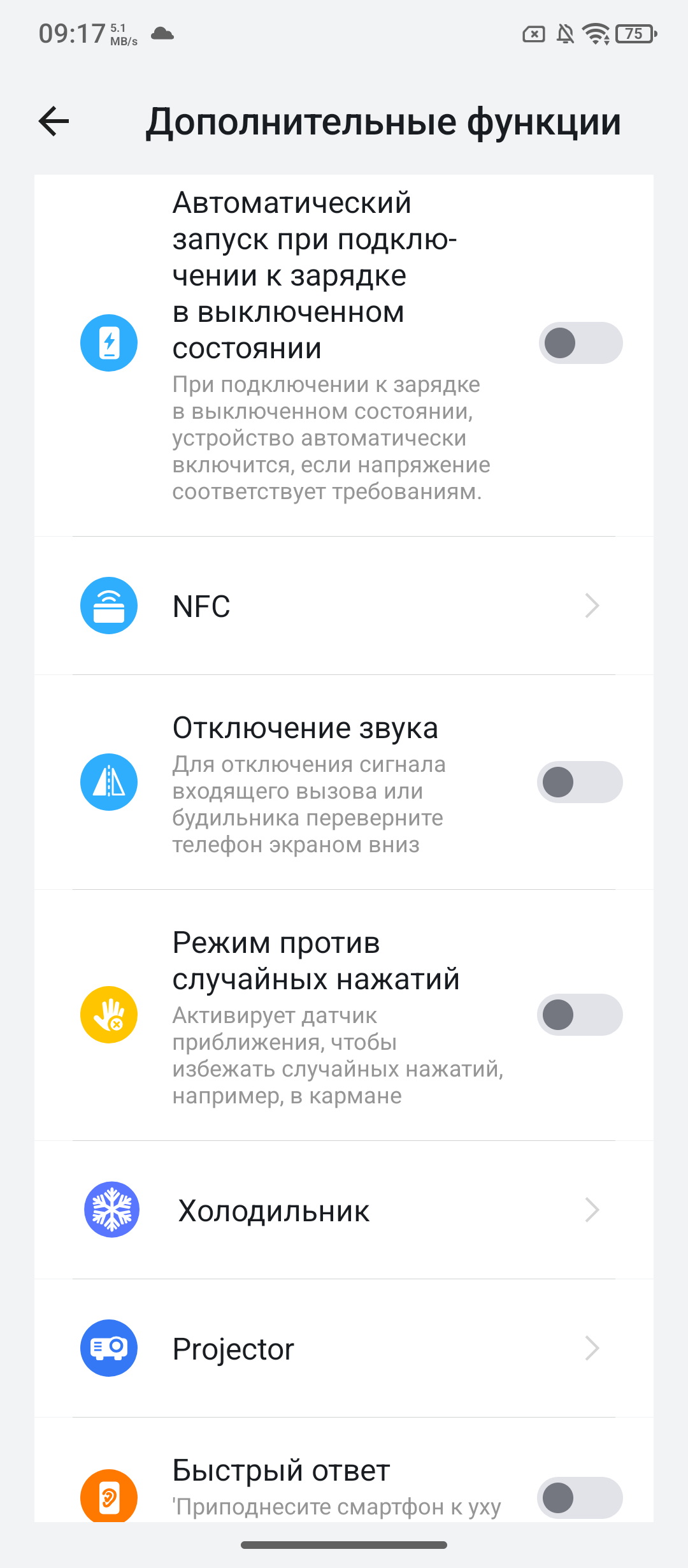 Система у Ulefone необычная, она многоуровневая. Если в других защищенных телефонах она проще и понятнее, то в обозреваемом в одном подразделе меню может находиться множество дополнительных настроек, как в одноименном меню ниже. Можно отключать звук входящего звонка простым переворотом телефона, отправлять неиспользуемые программы в «Холодильник», а так же охлаждать телефон после использования проектора в «Морозилке», но и это еще не все: можно вести запись камерой на заднем плане, общаться без интернета, пробуждать экран двумя касаниями, слушать радио без необходимости подключения проводных наушников и другое. По правде, Ulefone удивил количеством программ, настроек и отчасти кастомизацией. Я привык к меньшему их количеству в защищенных телефонах.