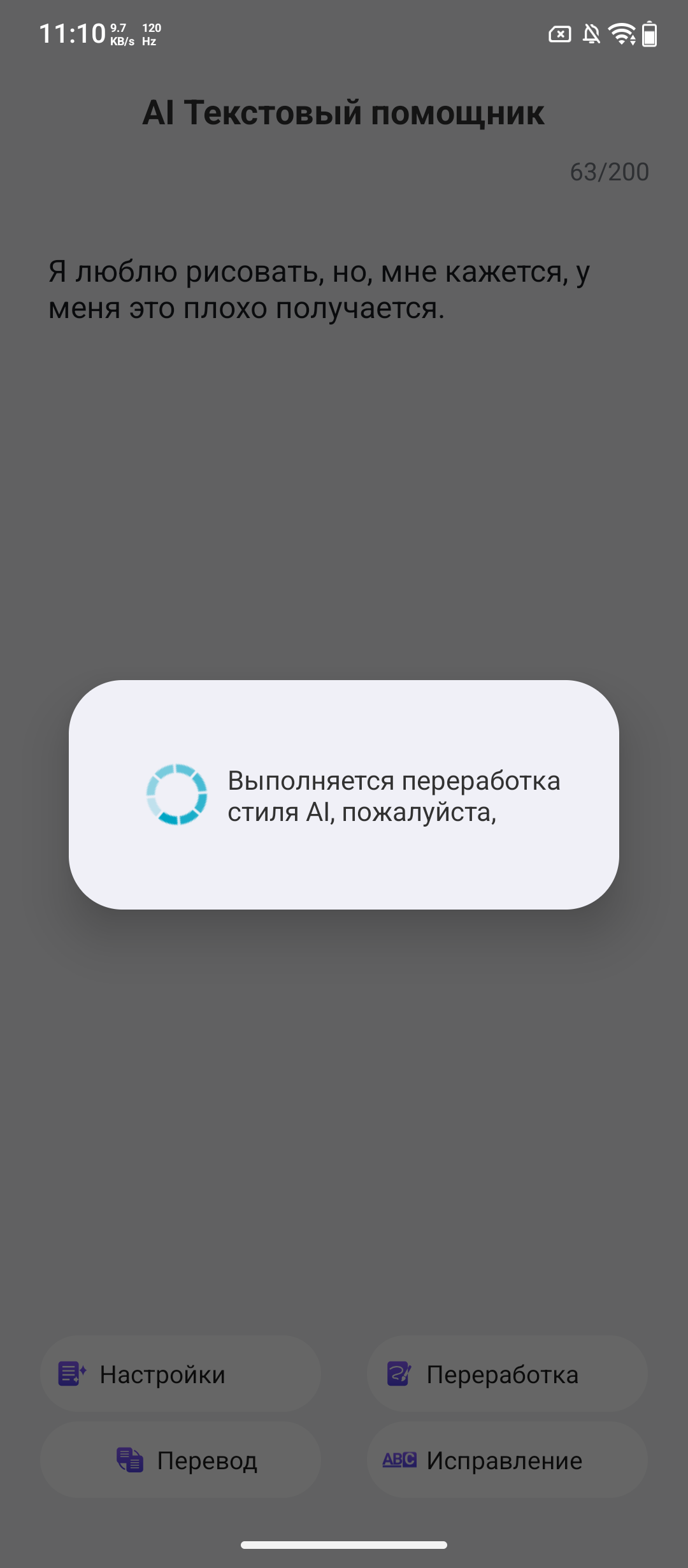 На главном экране нарисован экран для проекции и собака. Как оказалось позже, собака при нажатии делает разные движения. Смотрится нормально. В верхнем меню доступны привычные настройки подключения, оповещения и управления сигналами.